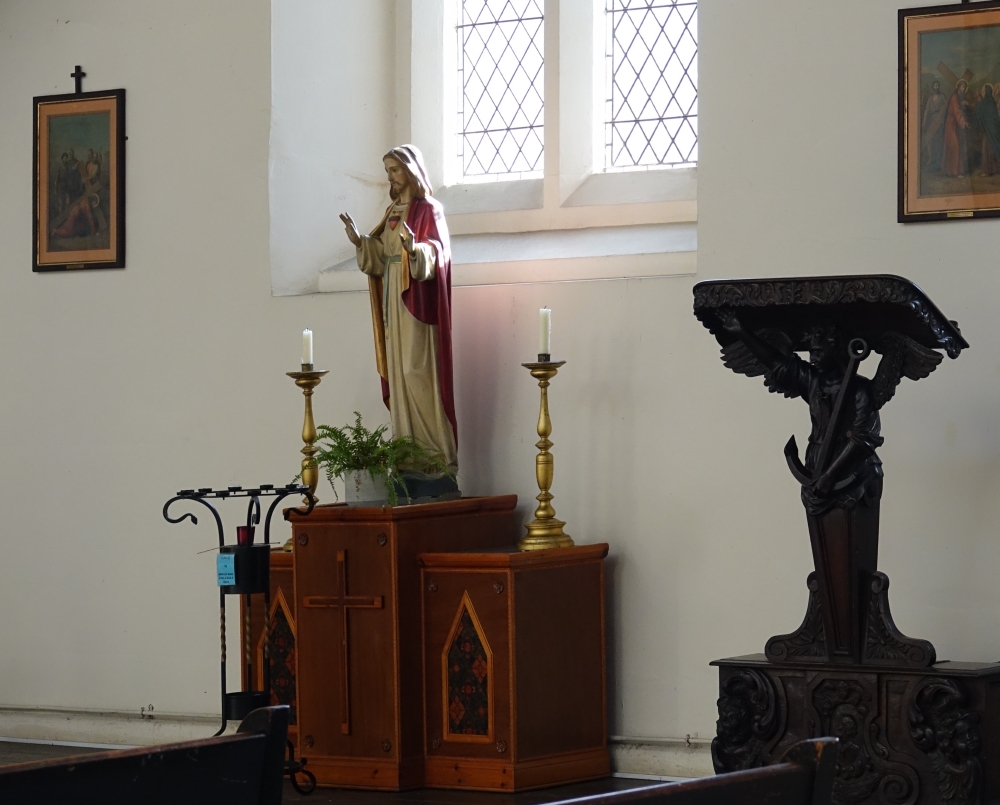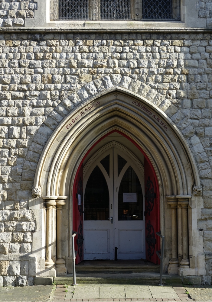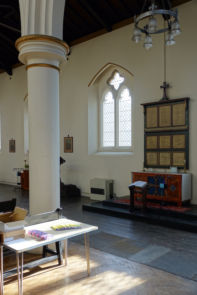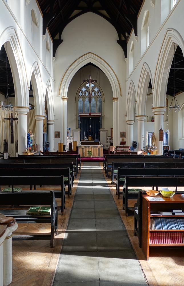 By Frederick J. Francis from 1848-50. A prominent spire amongst the housing. The interior is only viewable from the west door and a small enclosed narthex.