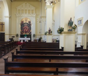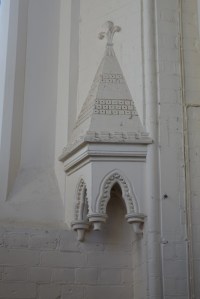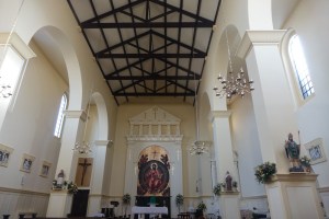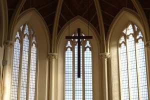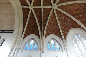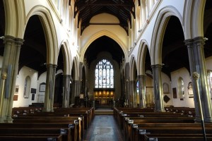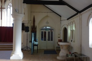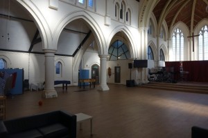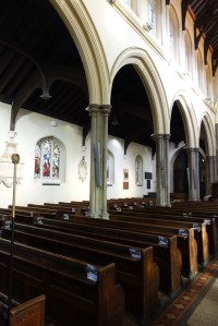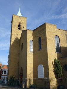 Closing off the view looking south down Quarrendon Street, this is a church of 1902-03 by J.E.K Cutts and J.P. Cutts. The west end has been divided off vertically and horizontally for halls, kitchens and a store-room for the food bank. The former chancel screen is now at the east end. Arts and Crafts glass by Karl Parsons is now hidden away in the store-room at the west end. There are also several later Morris and Co windows.