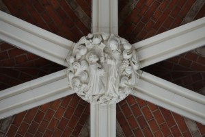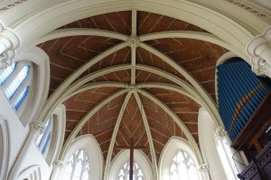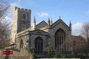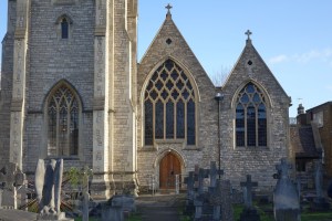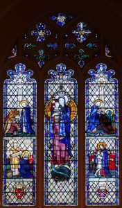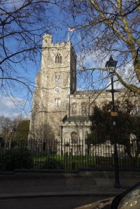At the north end of Putney Bridge facing across to Putney Parish Church, this is the old parish church of Fulham on the edge of Bishop’s Park. The tower dates from 1440 but the rest was rebuilt in 1880-81 by Arthur Blomfield. Inside there is a large collection of monuments from before the rebuilding and much, mainly Heaton, Butler and Bayne, glass. Some medieval pieces remain together with an older Wailes window and a later one by Margaret H.E. Rope.