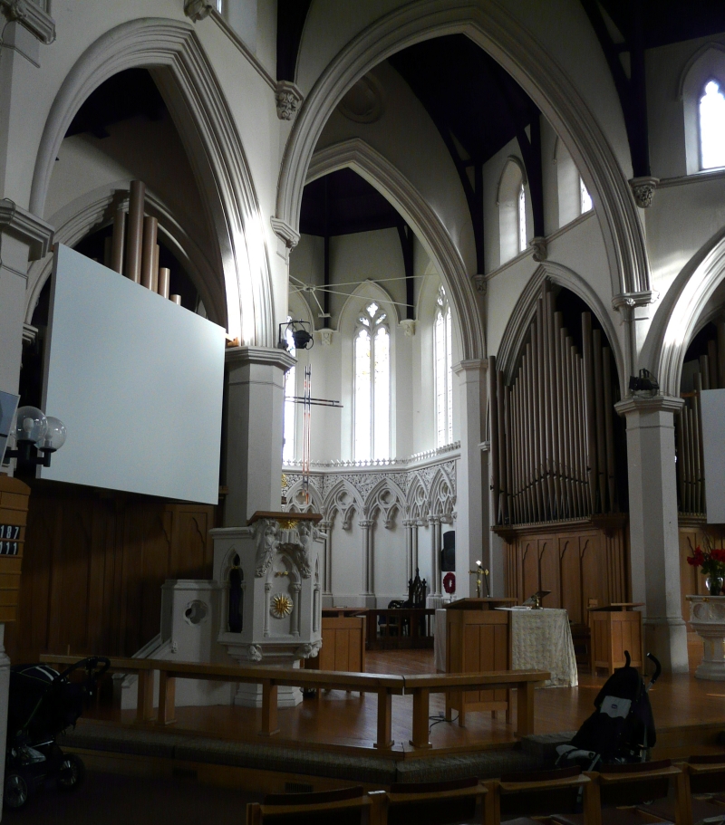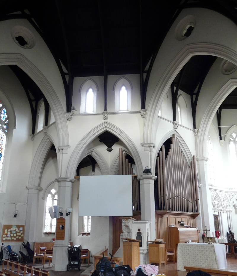Built as part of the Highbury Park estate and designed by Habershon and Brock in 1869-70. The western end has been divided off as a lounge, nursery and offices with a gallery above.