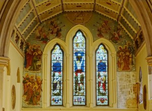 This is the chapel of an independent school at the top of Highgate Hill. It was built as part of extensive new buildings by F.P. Cockerell in 1865-1867. The apse decoration is by Heaton, Butler & Bayne dating from 1889. There is a small churchyard from the predecessor building which was used as as an Anglican chapel until St Michael’s church was built in 1831.