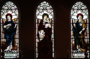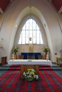 Built in 1959, designed by Randall Morris to replace a war damaged church and St Mary’s, whose tower still stands. A few brasses and memorials from that church are on display in this building Church website