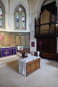 Away from the main roads through Islington this church replaced the Clothworker’s Guild City of London Lambe’s Chapel. Some Flemish glass and the figure of William Lambe were transferred here when this building was constructed by F.W. Porter in 1873-75. In the last couple of years there has been a reordering that has exposed the tiled work in the apse.