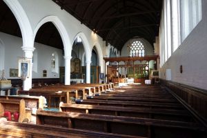 A church of 1909 by T.G. Jackson near Wimbledon Park station.