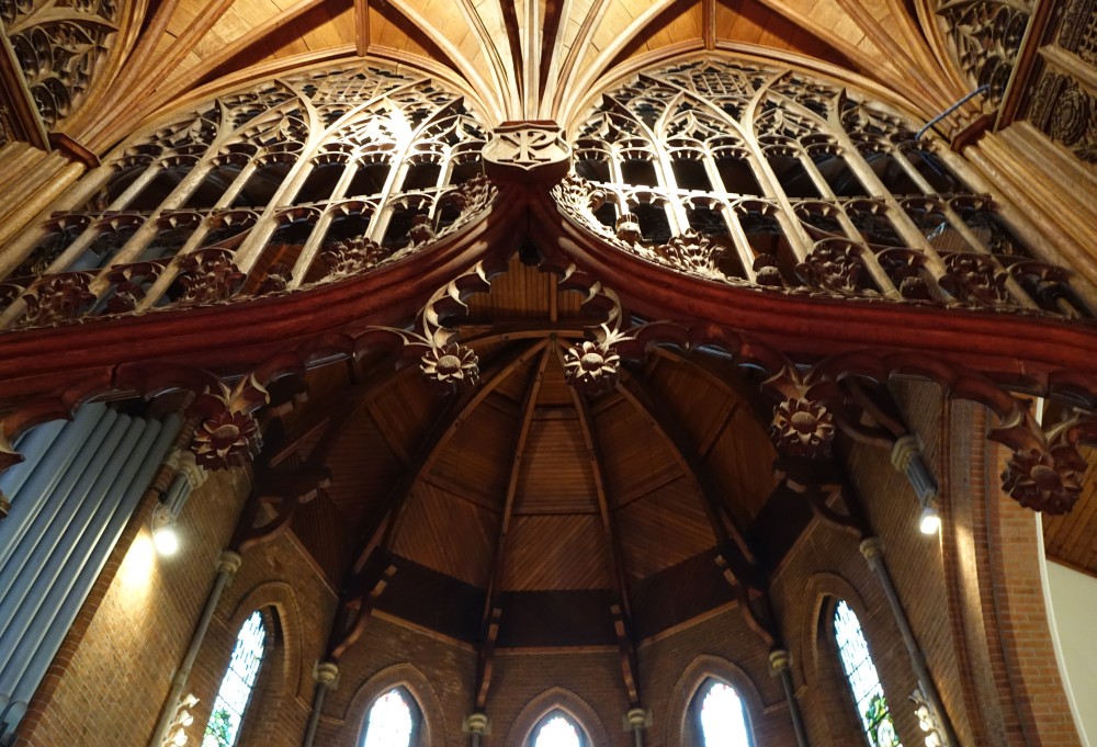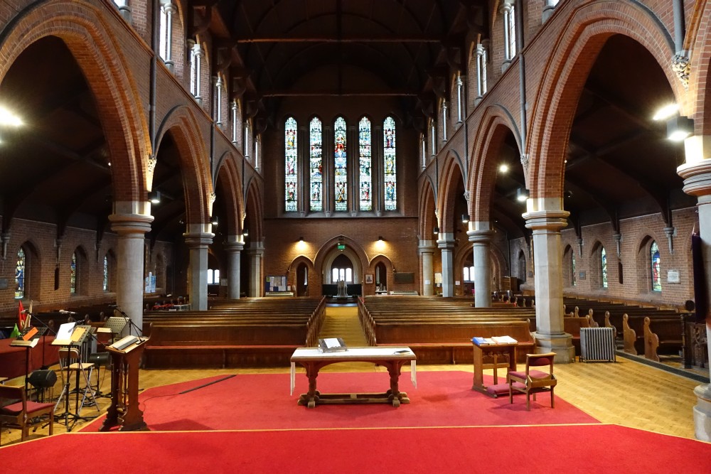 Very high church suburban church built 1892-93 by J.T. Newman and W.Jacques. Three windows are by Gordon Bedingfield.