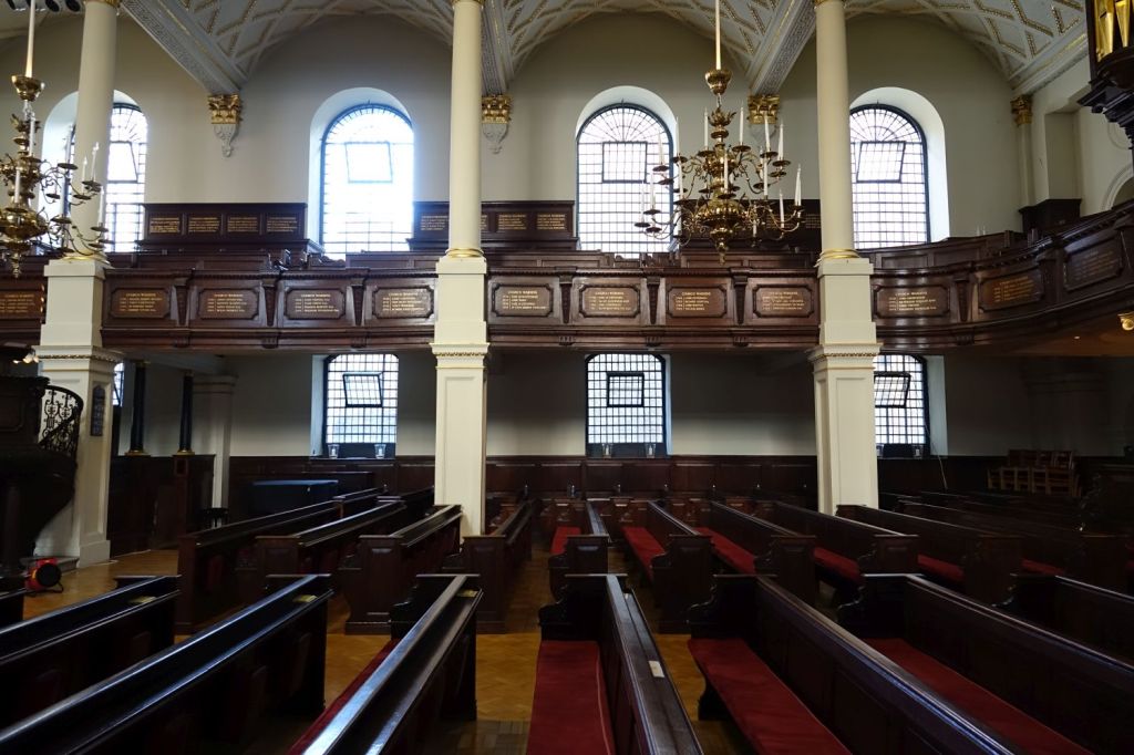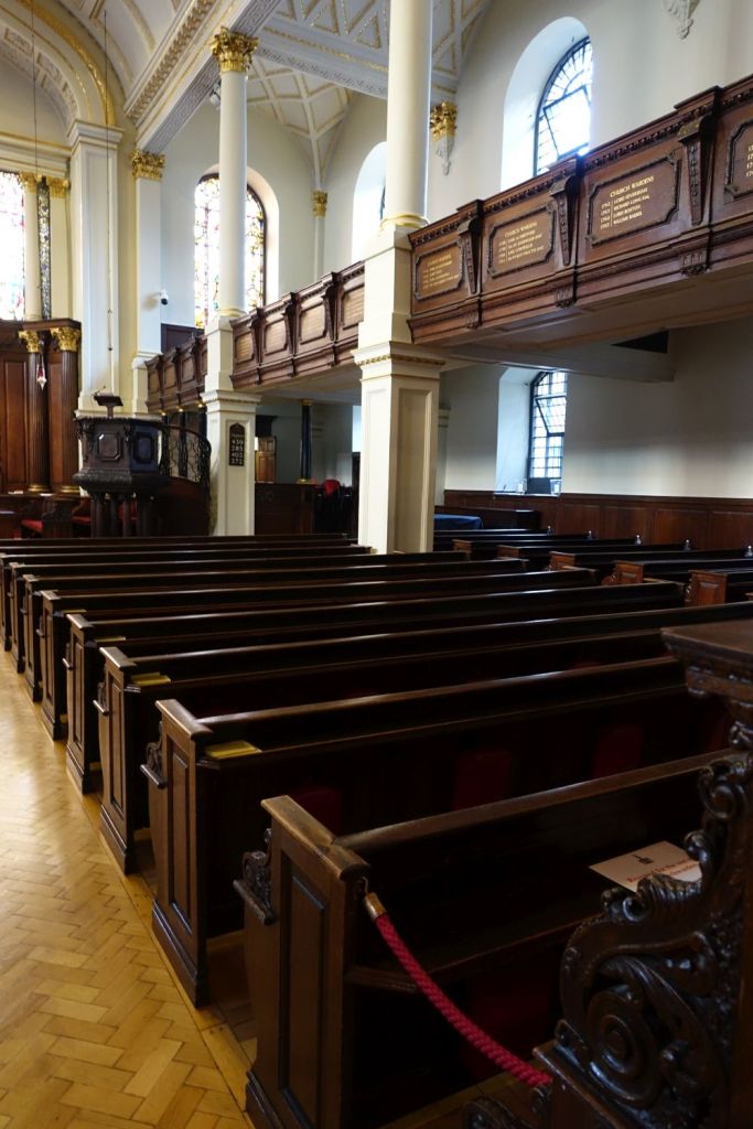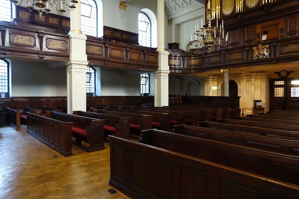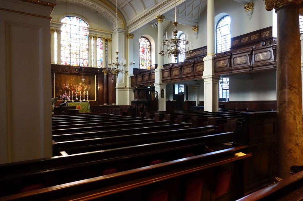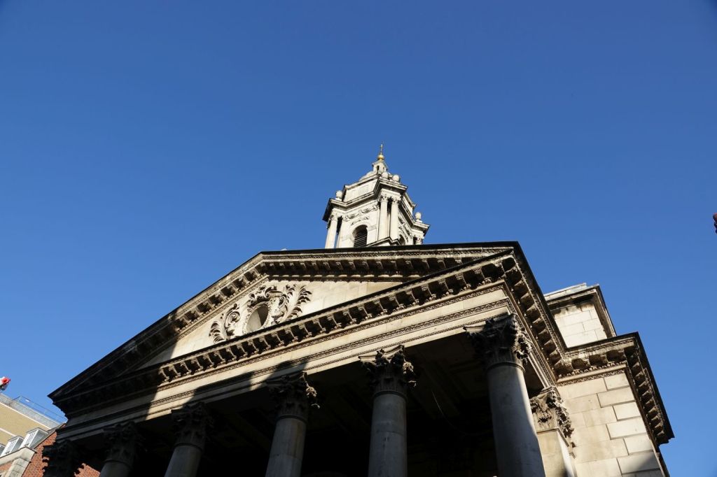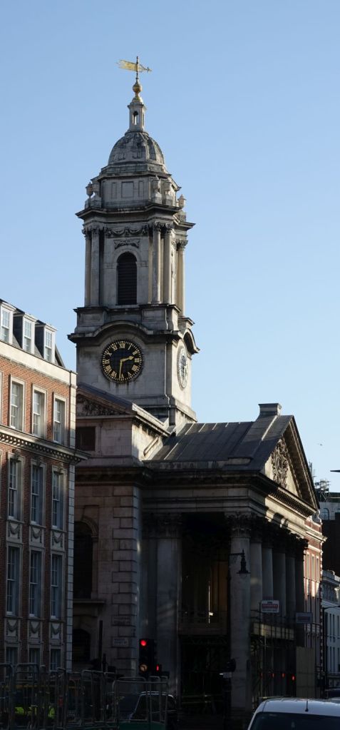 A large classical church a few yards from Regent Street. It was designed by John James and built between 1713 and 1724. The show front is partially covered in scaffolding (Feb 2023), the images without it are from 2011.