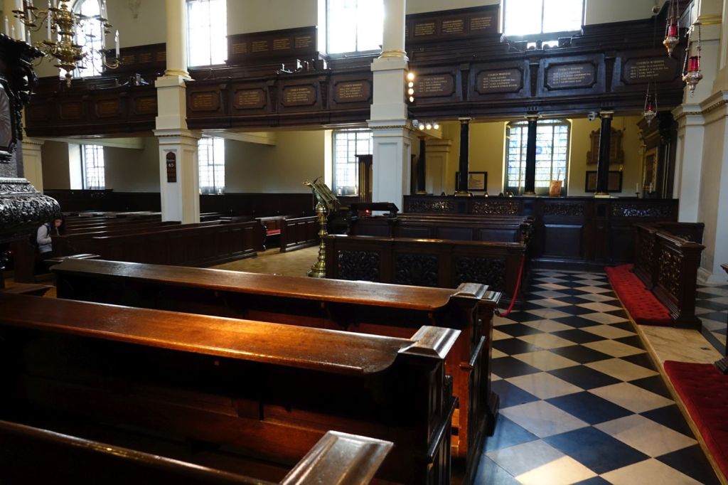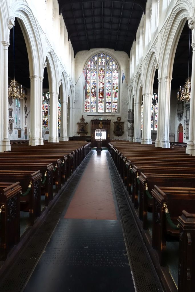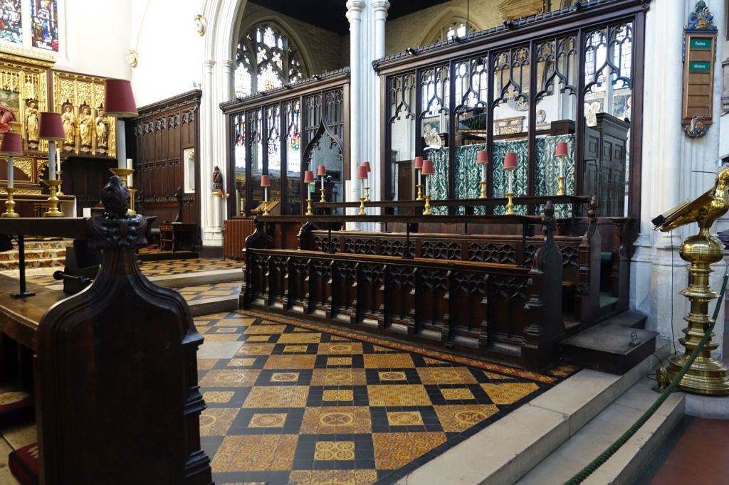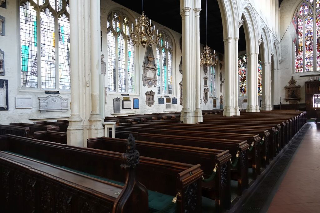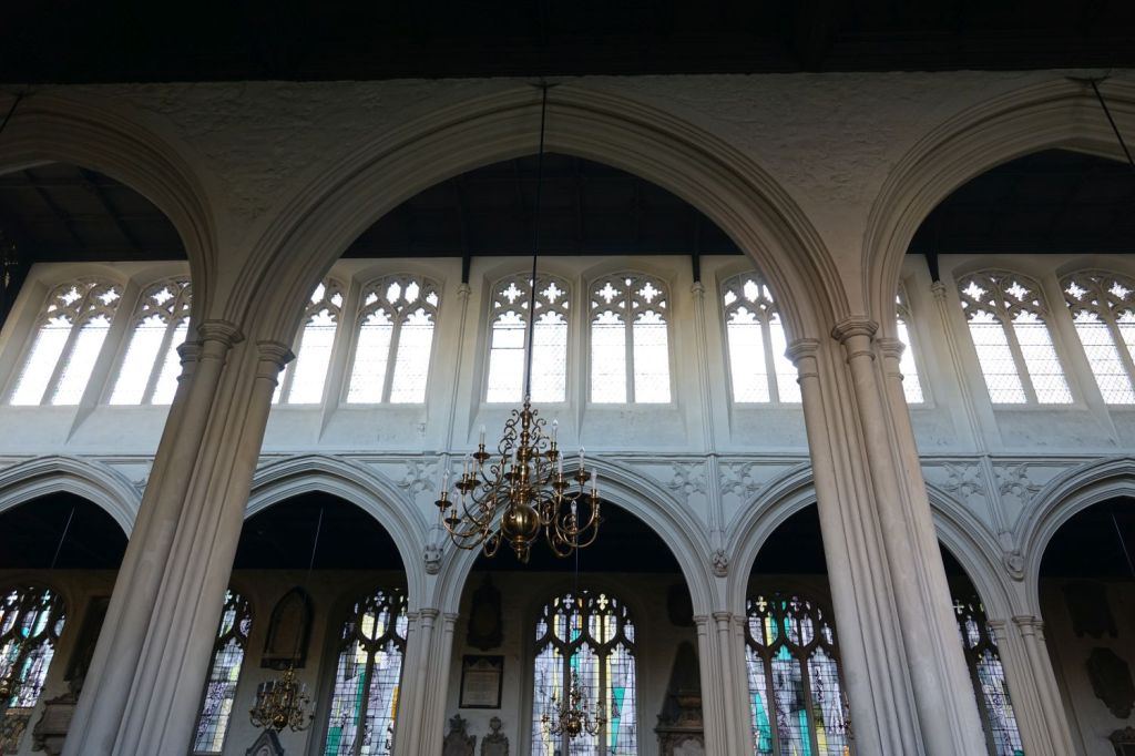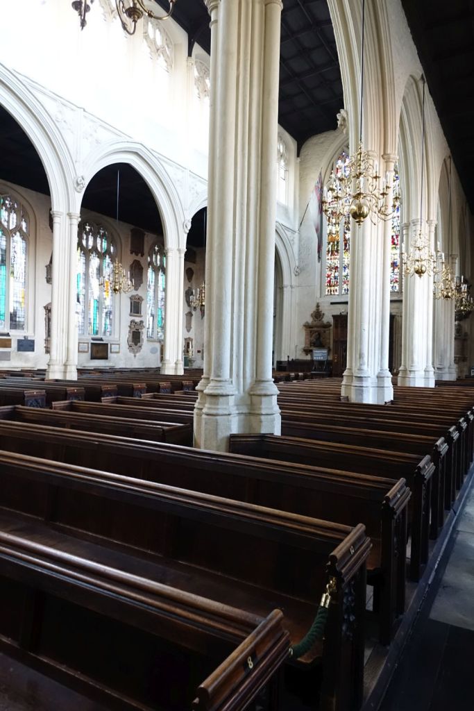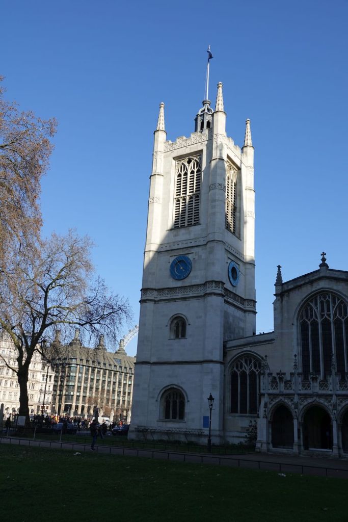 In the shadow of the Abbey and opposite the Houses of Parliament. It was built 1482-1523. The Nave was designed by the mason Robert Stowell and the tower by the mason Henry Redman. The tower was rebuilt by John James ion 1735-37 and there was a major restoration by George Gilbert Scott in 1877-78. The chancel was extended by Walter Tower in 1905-06 and J.L. Pearson added west and south-east porches in 1891 and 1894 respectively. The east window is Dutch from 1515-27.