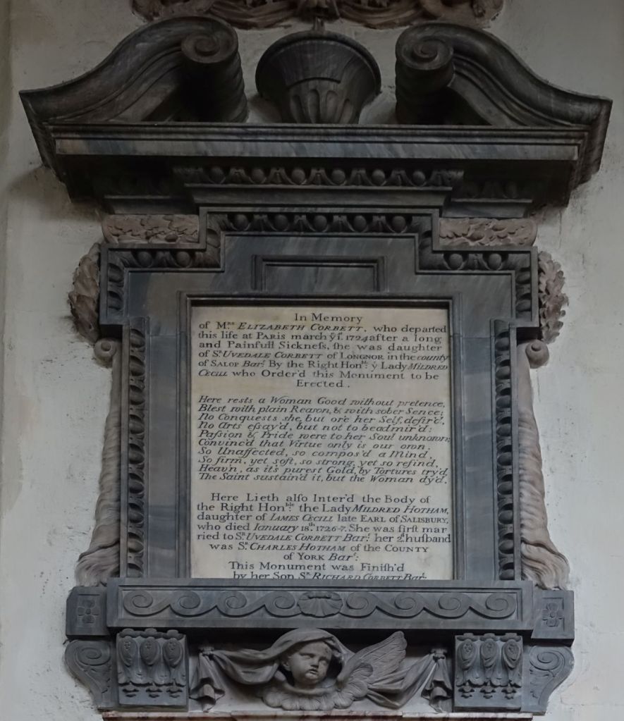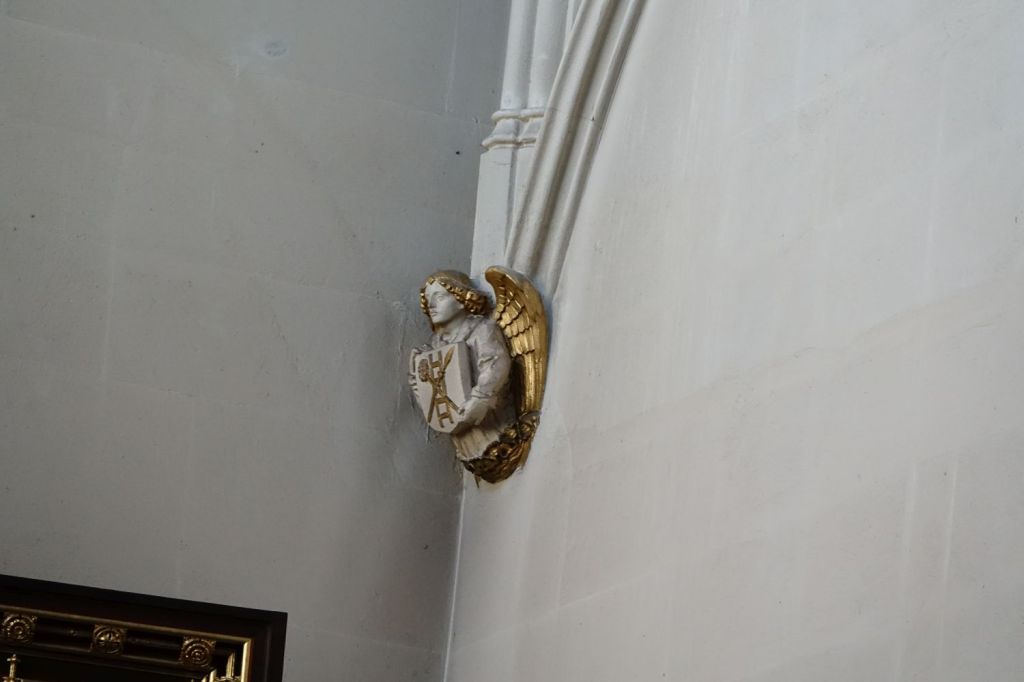 The body of the church was built in 1715 by John James to effectively act as a private chapel for nearby Cannons owned by the Earl of Chandos. The 15th century tower was retained from the old parish church. The ceiling was painted by Laguerre and the walls by Sleter. The east and west end ceilings are by Bellucci. On the north side is the anteroom and main Chandos Mausoleum built 1735-36 by James Gibbs and housing the huge Grinling Gibbons monument to the Duke of Chandos and his wives.The walls and ceiling are decorated by Sleter and G. Brunetti. The whole building is an overwhelming baroque experience.