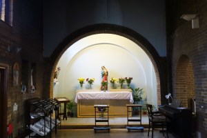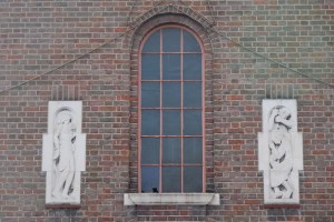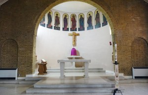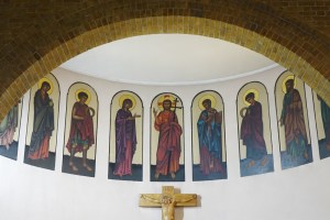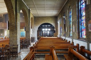 On a commanding site above the road. The church was built by Samuel Daukes and Hamilton in 1847 in Wells Street in central London. It was one of the earliest scholarly gothic revival buildings and had a stong Anglo-catholic ethos. Surplus to requirements in central London tt was moved to Kingsbury in 1934 by W.A Forsyth to provide an appropriately sized church for the growing suburb. Inside there are furnishings by the cream of 19th century architects and designers including Alfred Bell, Butterfield, Pearson and Street