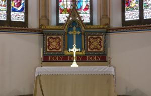 A large dark red brick church, a little way north of the town centre, of 1888-89 by Kelly and Birchall of Leeds. Unusually for this type of large red brick suburban late 19th century church it possesses a tower with a spire that was added in 1891.
