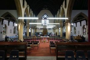 The large parish church of Kingston upon Thames. The building is largely 15th century but was heavily restored by Raphael Brandon, 1862-66 and John Loughborough Pearson, 1883. The brick tower top was added in 1708 by John Yeomans. During 2014 it has undergone a major restoration by Ptolmey Dean Architects.