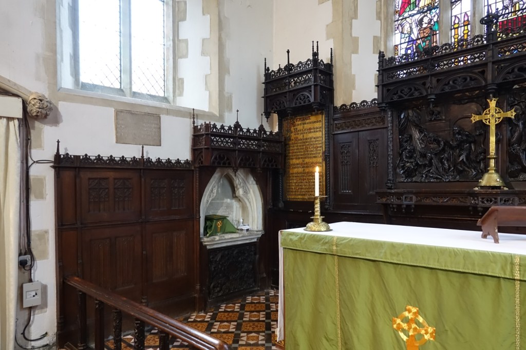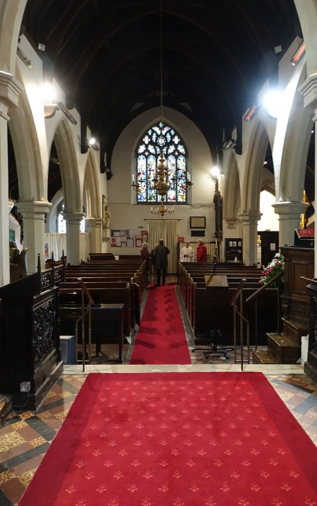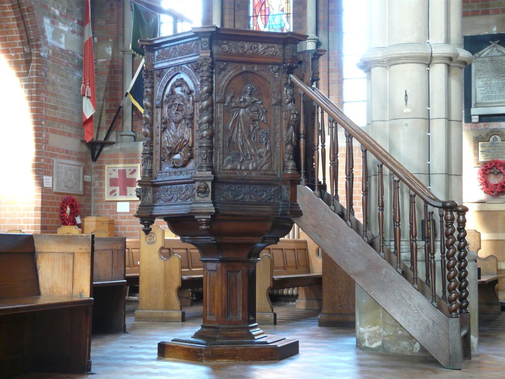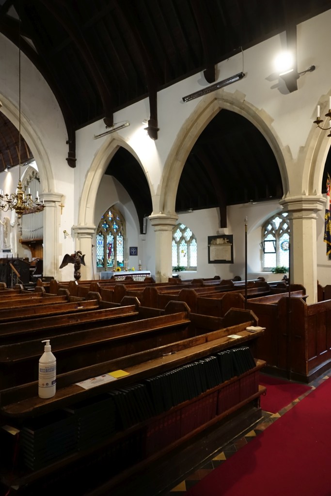 To the east of the town centre, but hidden down a side turning. It is a large church of 1899-1901 by George Fellowes-Prynne, added to a chancel and lady chapel of 1882 by R.J. Withers. It features one of Fellowes-Prynne’s characteristic stone screens. The pulpit is of 1651. The church more foundation and consecration stones than any other church I know of.