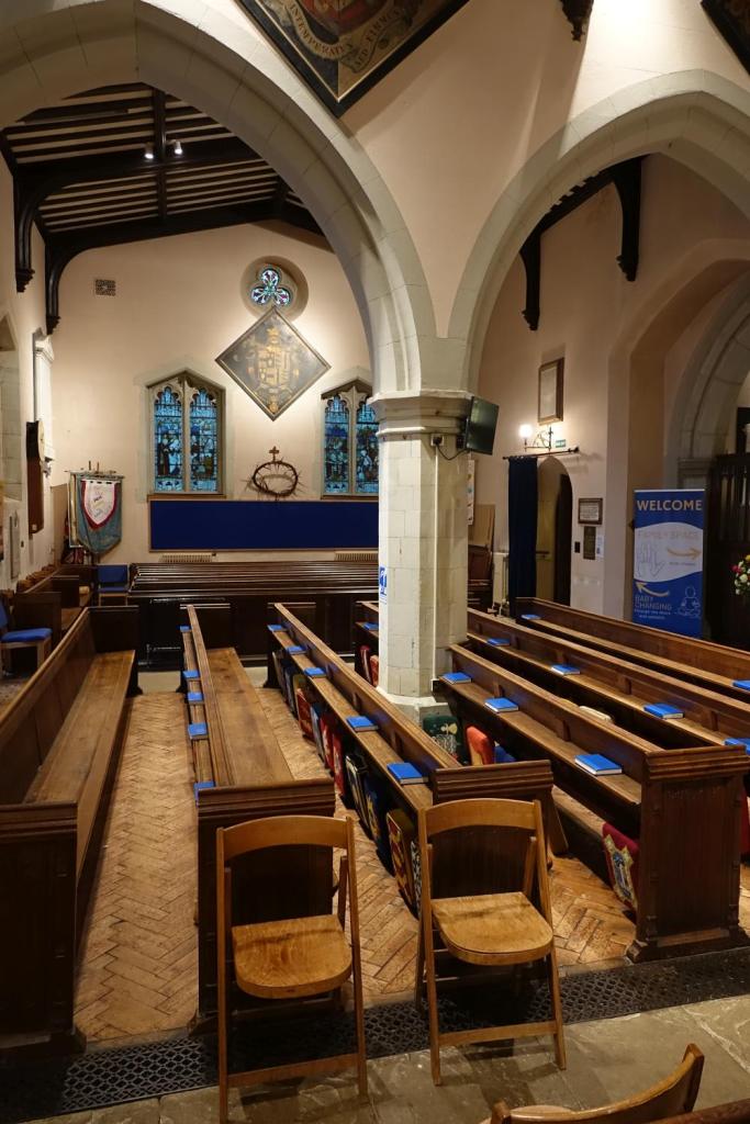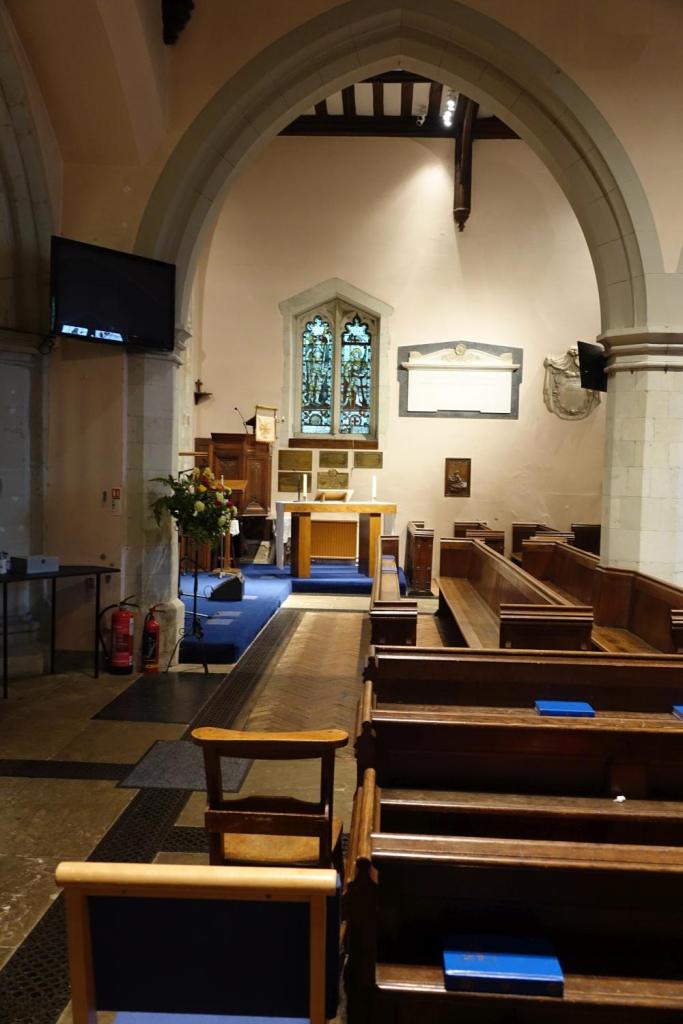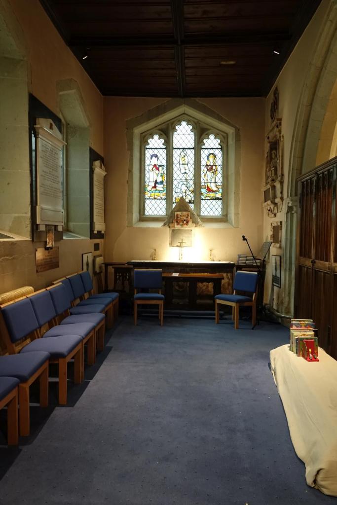 The hospital which deals with mental illness moved here in 1930 from what is now the Imperial War Museum. A freestanding chapel just inside the entrance gates was built. The architects were Elcock & Sutcliffe with the chapel being designed by Ralph Maynard Smith. Despite damage in 1944 there are several period fittings extant. One corner at the back is now a small Muslim prayer area but the building retains more traditional church fittings than many hospital chapels.