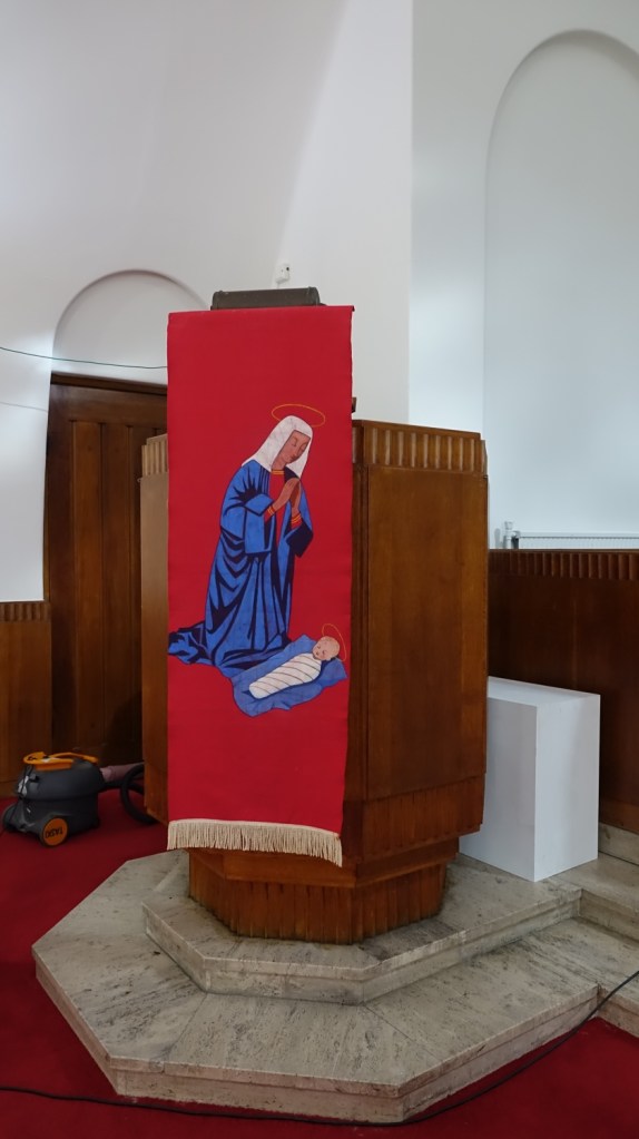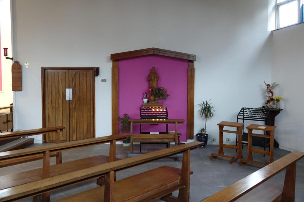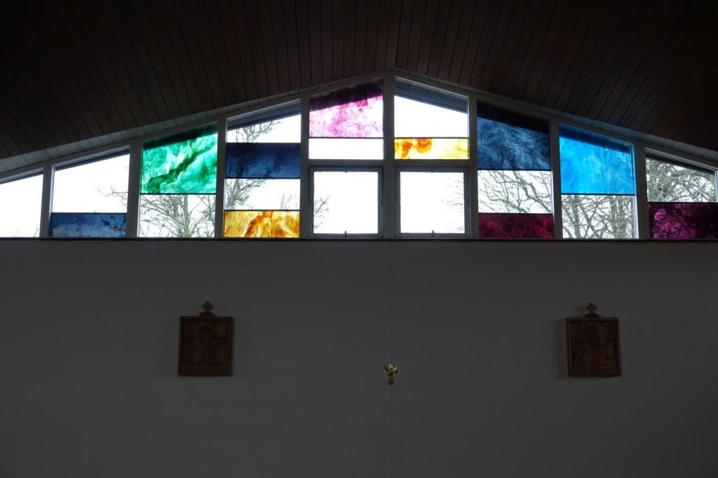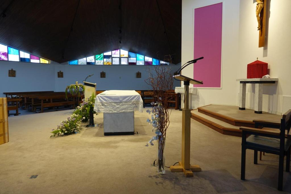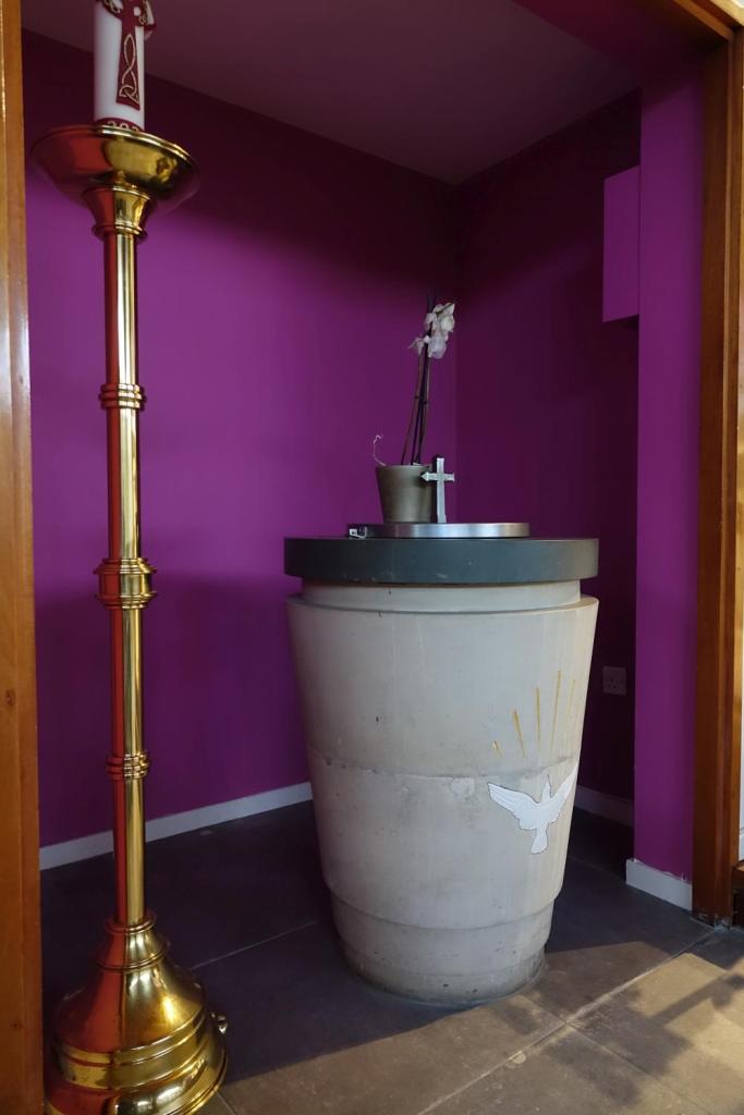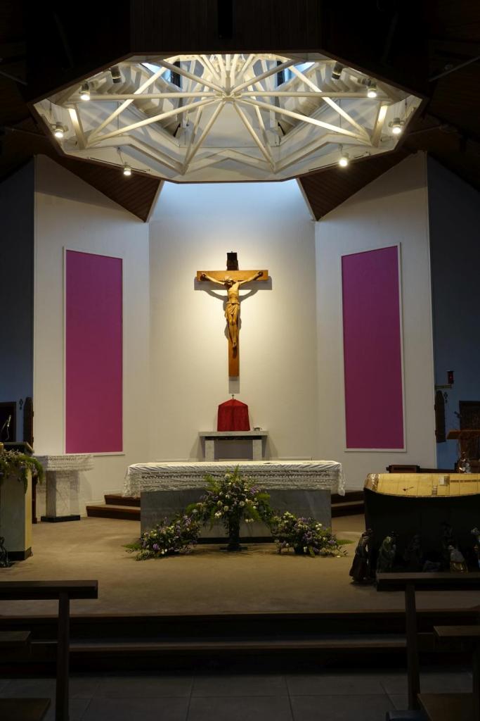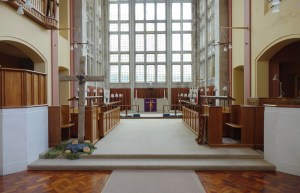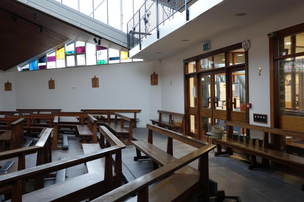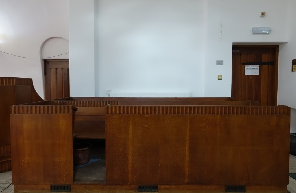 A small multi-faith room where the sanctuary area can be curtained off from the body of the chapel. The hospital was a PFI initiative and built by Taylor Woodrow between 1998 and 2003.
