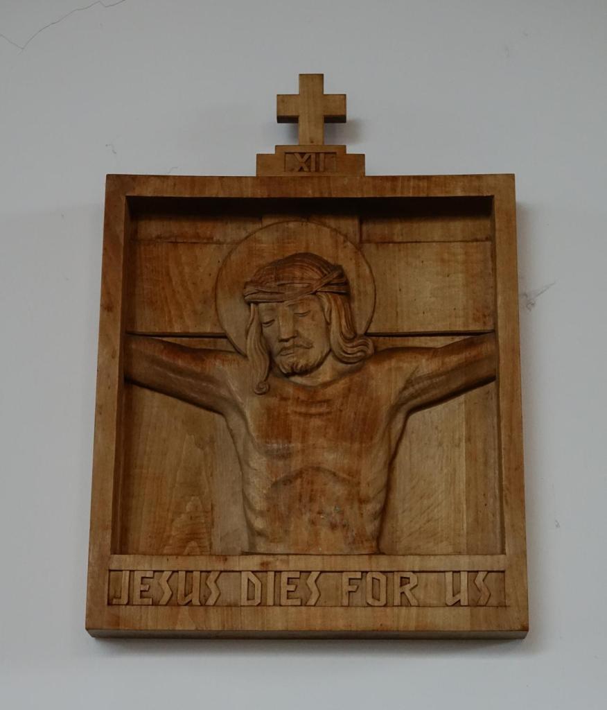 West of the town centre at a road junction this is a church of 1962 by Bingham Towner Associates.