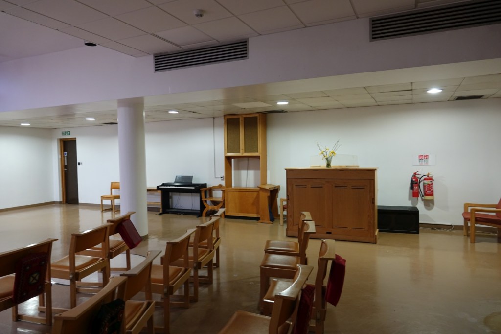 A small room on the ground floor near the Euston Road, part of a suite of Christian, Muslim and Jewish spaces. It is part of the hospital rebuilding in 2000-2005 by Llewelyn-Davies & Weeks