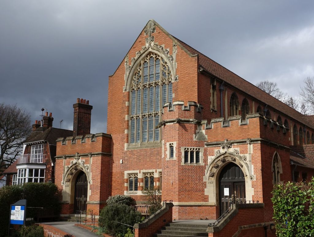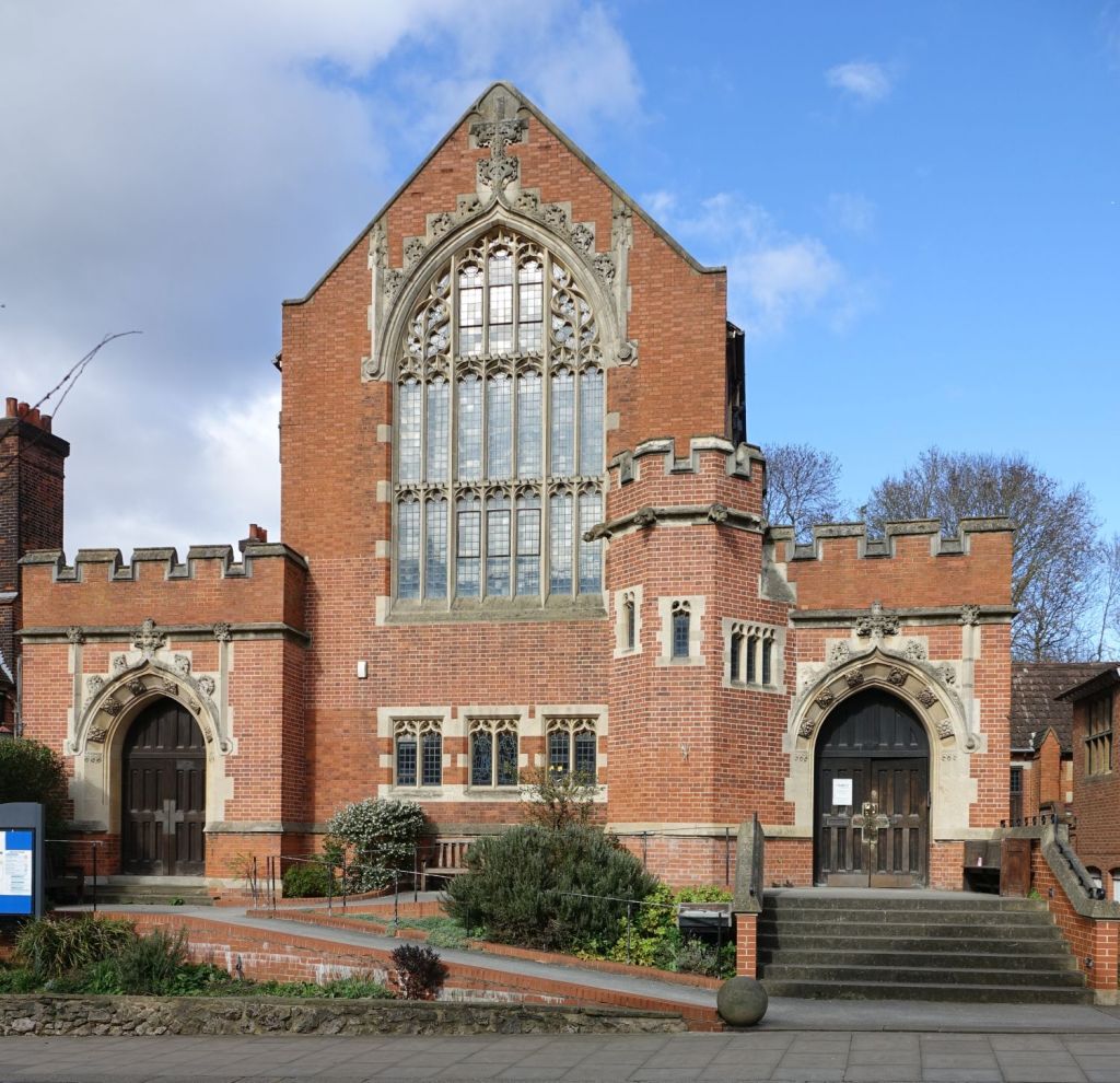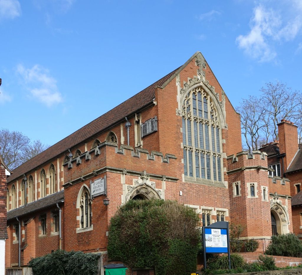 Build at the apex of the King Henry’s Road and Primrose Hill Road junction. It dates from 1870-72 and was designed by M.P. Manning, with the wide south aisle and chapel added in 1891-92. From 1901-1915 the vicar was Percy Dearmer who had a great influence through his writings on church furnishing and decoration, the white walls of the building reflect this. The reredos by Bodley and Garner was cut down to show more of the east windows, the pulpit is also by them.