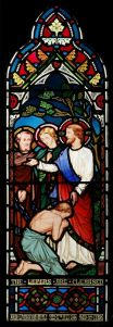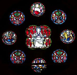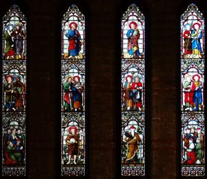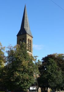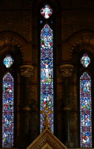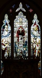 High up above the town centre of Coulsdon this church was built between 1911 and 1914 and designed by F.H. Greenway & J.E. Newberry but was incomplete until 1962 when a permanent west end was added by John Stammers. The screen between the entrance and the church has some large panes of engraved glass which proved difficult to photograph. There is some post-WW2 stained glass by Ninian Comper.