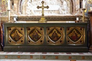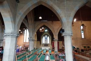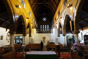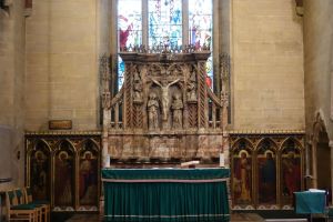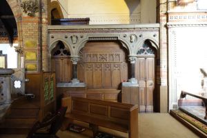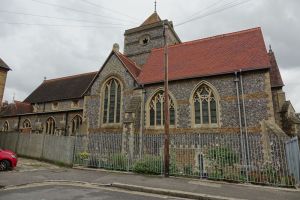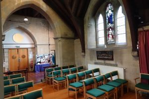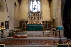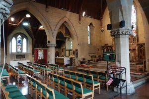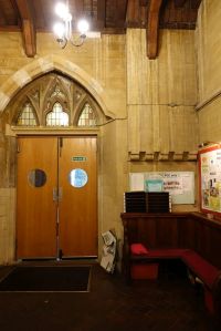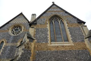 Several churches in the London suburbs had to be adapted from small medieval buildings to one that could cope with a much larger suburban population. In this case the south aisle was demolished and much larger aisles, nave and chancel were added at right angles in 1958 and designed by Sebastian Comper. The old church is now an entrance area with the chancel used as a chapel and the north aisle as a vestry. The new church interiors are in the last 6 rows.
