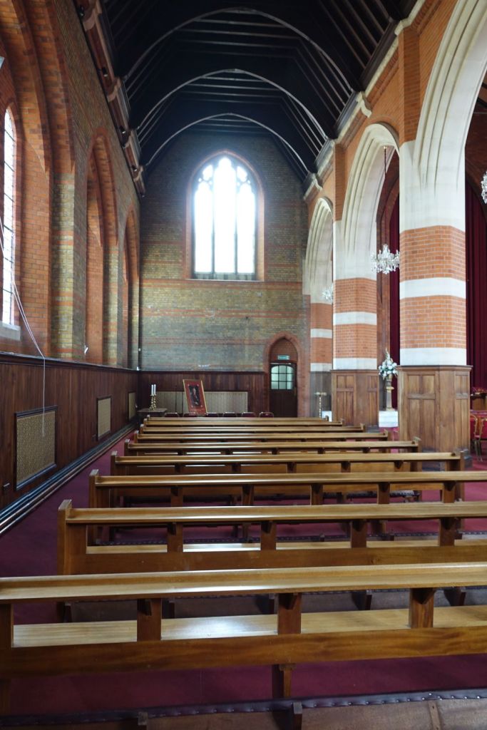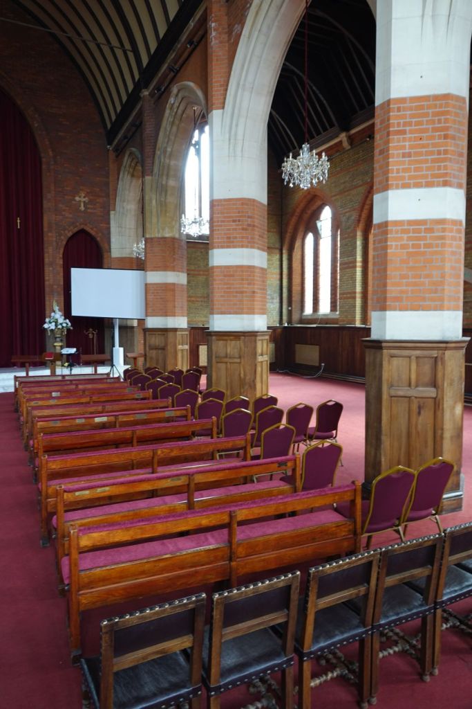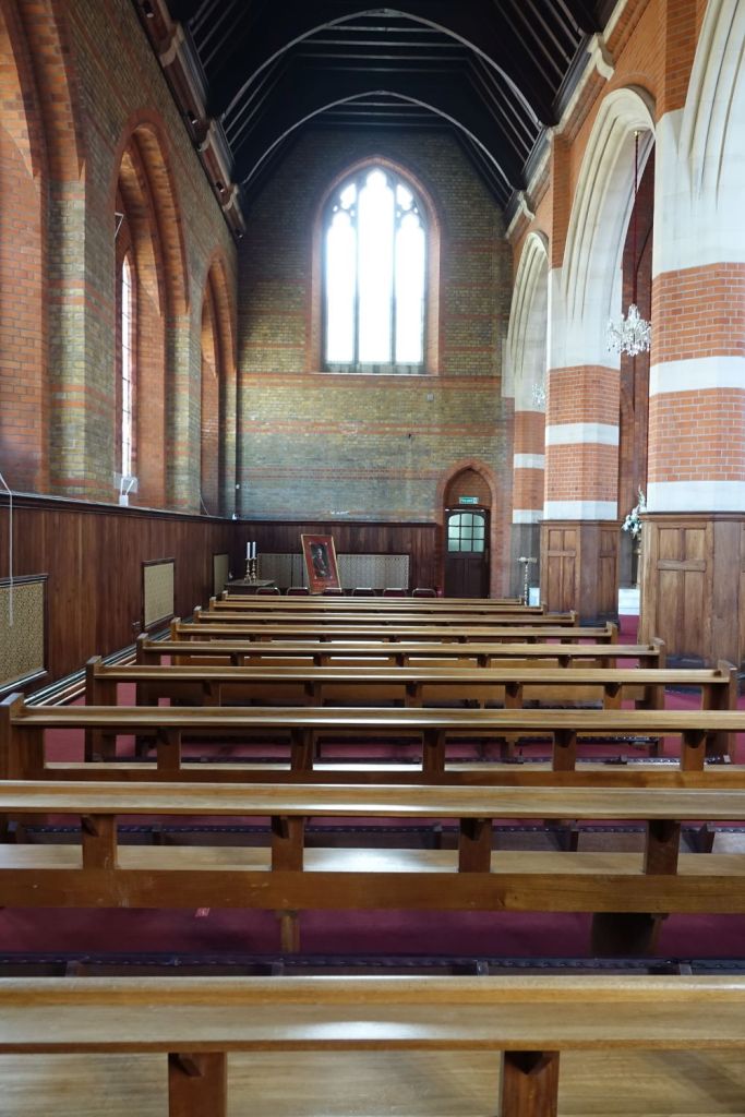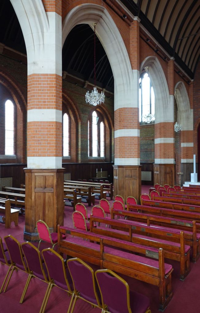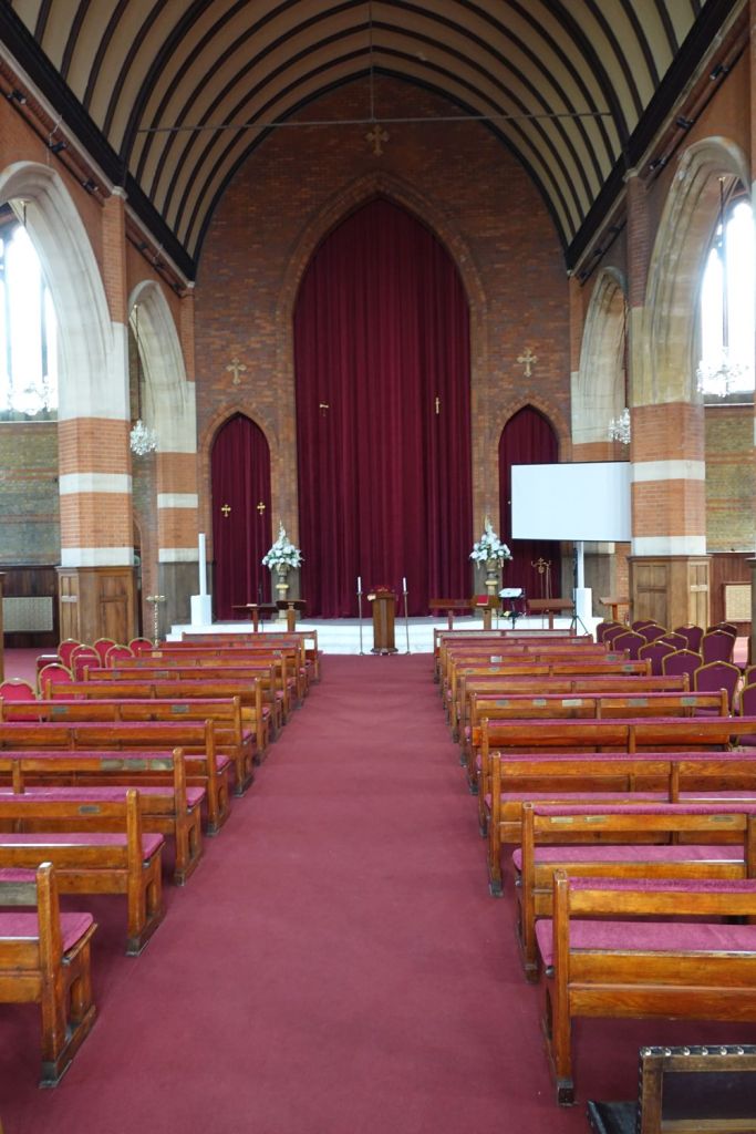 Just south of Uxbridge Road. It dates from 1903-09 and was designed by W.Pywell. It closed in 1984, was reopened as a plant from St John’s in 1990 but closed again in about 2017. It 2025 it was bought by the Assyrian Church of the East who had a small Cathedral in nearby Hanwell. That has now closed to be replaced by this building. Inside the orienation has been reveresed with screened off altar at the west end and the chancel area now just a raised area at the east end. The first set of images is of the church now and the second as an Anglican church in 2014.