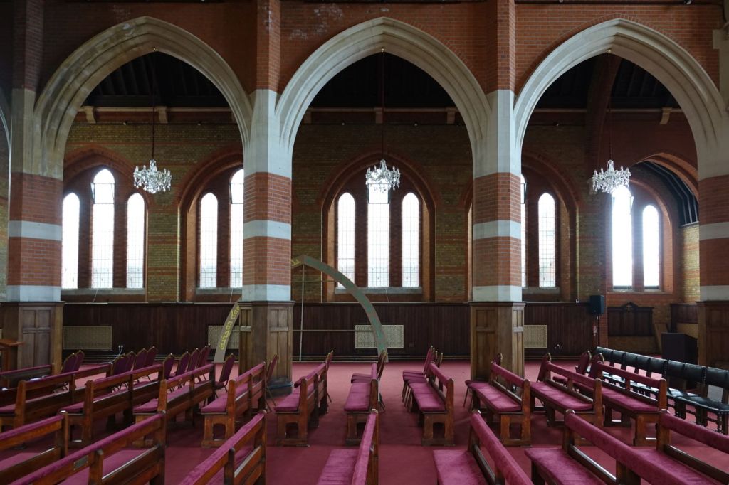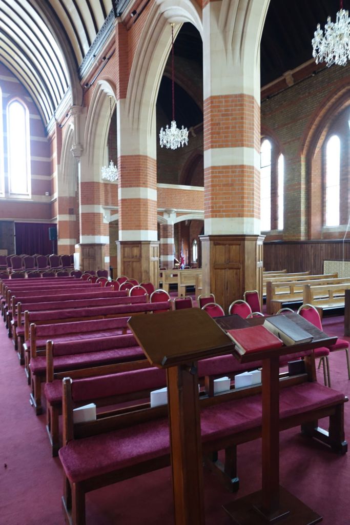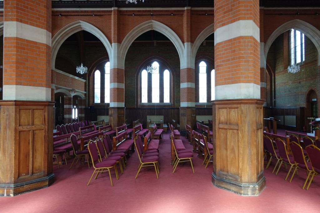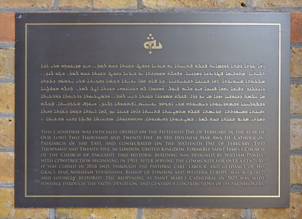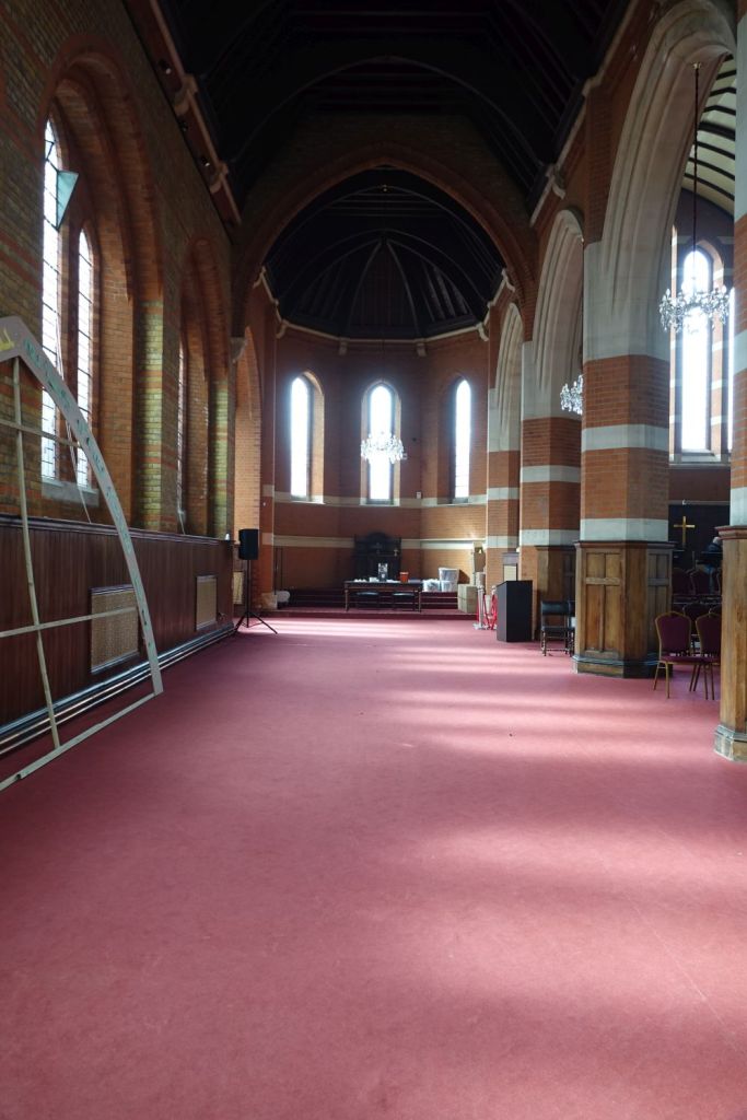Just south of Uxbridge Road. It dates from 1903-09 and was designed by W.Pywell. It closed in 1984, was reopened as a plant from St John’s in 1990 but closed again in about 2017. It 2025 it was bought by the Assyrian Church of the East who had a small Cathedral in nearby Hanwell. That has now closed to be replaced by this building. Inside the orienation has been reveresed with screened off altar at the west end and the chancel area now just a raised area at the east end. The first set of images is of the church now and the second as an Anglican church in 2014.
