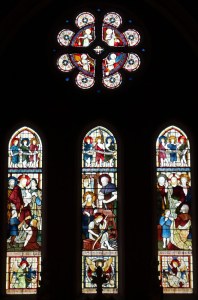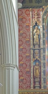 This is the chapel of an independent school at the top of Highgate Hill. It was built as part of extensive new buildings by F.P. Cockerell in 1865-1867. The apse decoration is by Heaton, Butler & Bayne dating from 1889. There is a small churchyard from the predecessor building which was used as as an Anglican chapel until St Michael’s church was built in 1831.