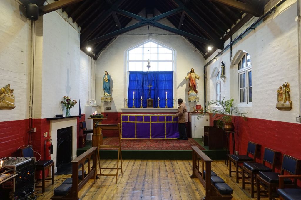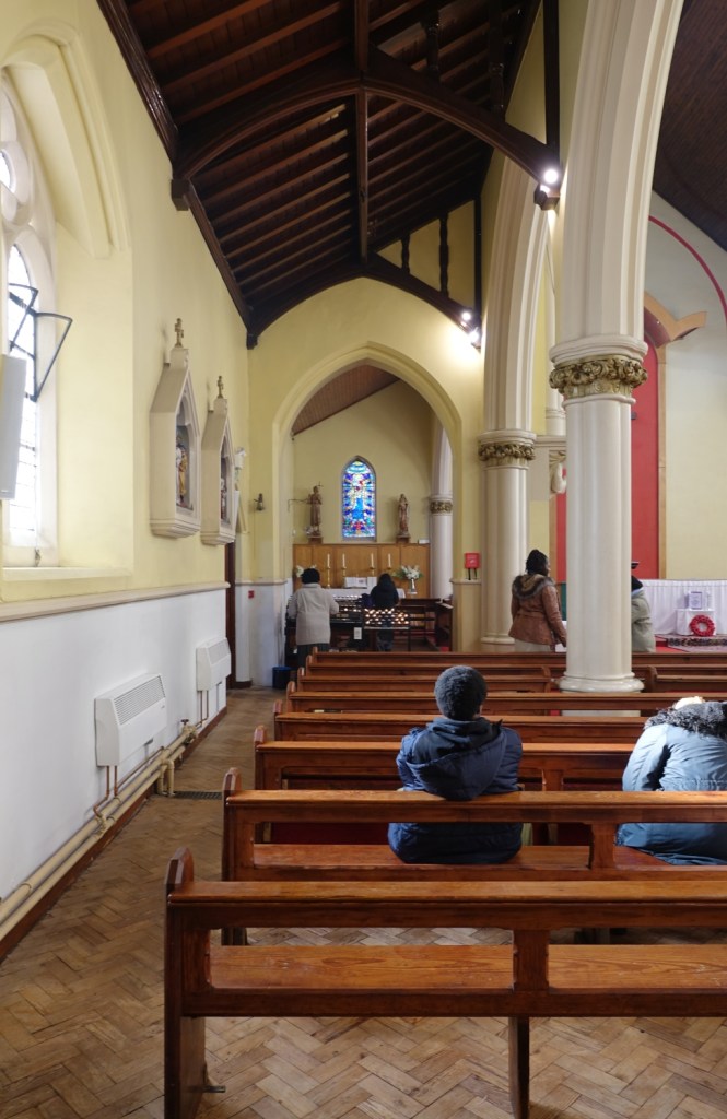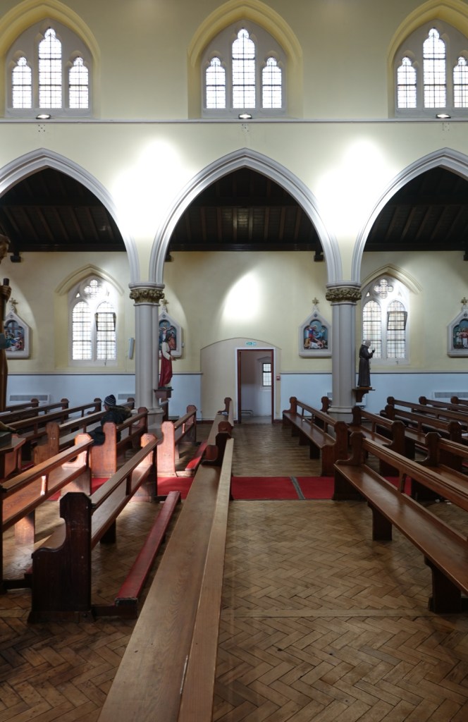 Over the road from Tottenham Hotspur Stadium It was built in 1895 to designs by Sinnott, Sinnott and Powell, a new sanctuary was added in 1966-67 by Archard and Partners.