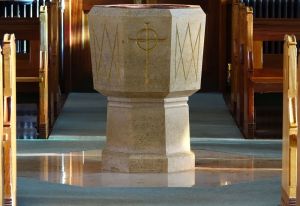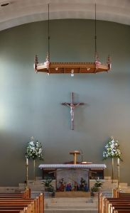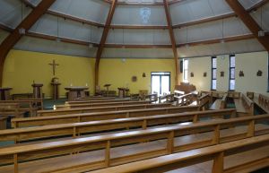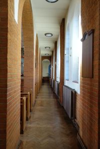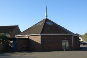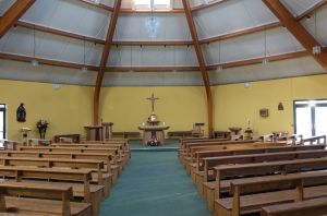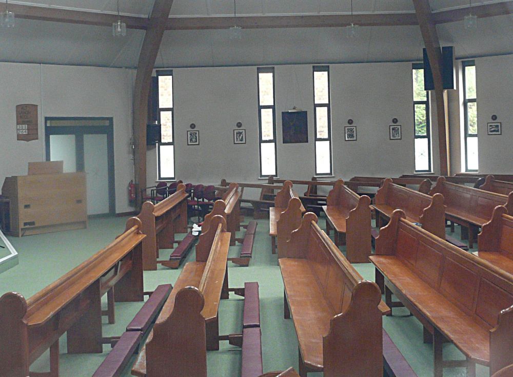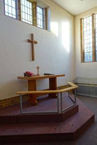 On the first floor, overlooking the atrium, of this modern hospital. It is a small irregularly shaped room with an altar and some coloured glass in the only windows. The hospital was built between 2004-2006 and was designed by Jonathan Bailey Associates.
