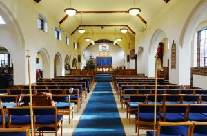 At one end of the town centre it was originally a mission church but is now a parish church. It is by Ernest C. Lee 1884.