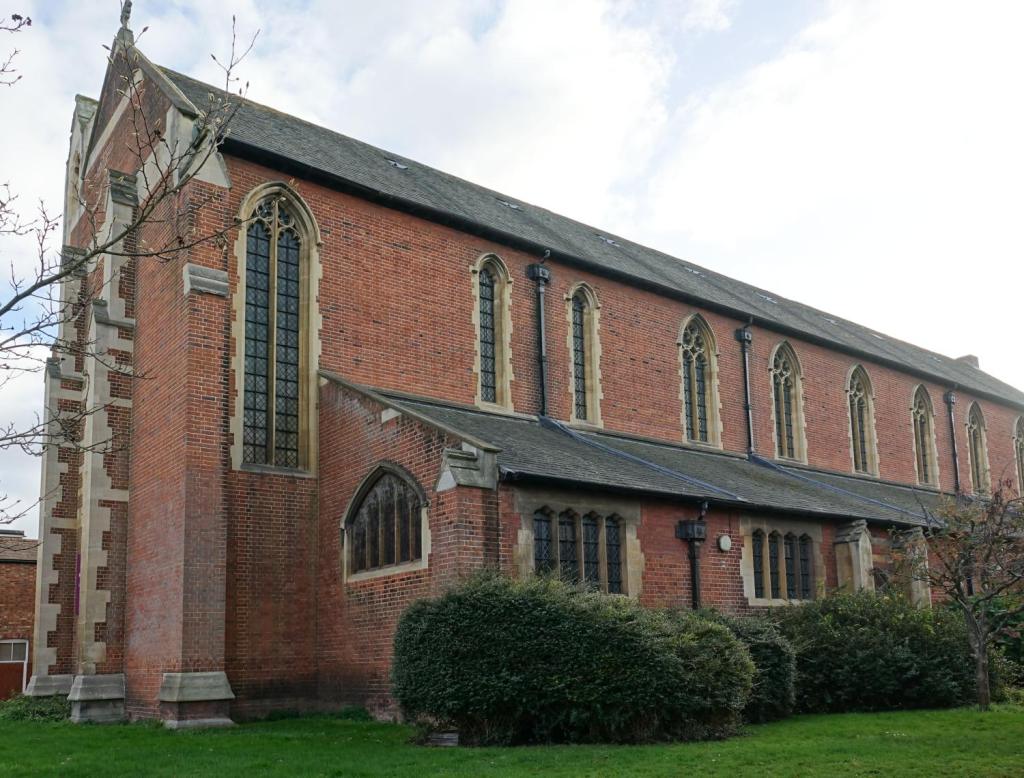North of the Roman Catholic church this is a building of 1906-07 by Bodley and Hare. It has been closed but has now been back into use in 2025 with a refurbished and reordered interior.