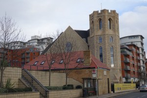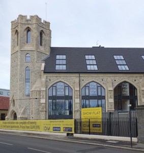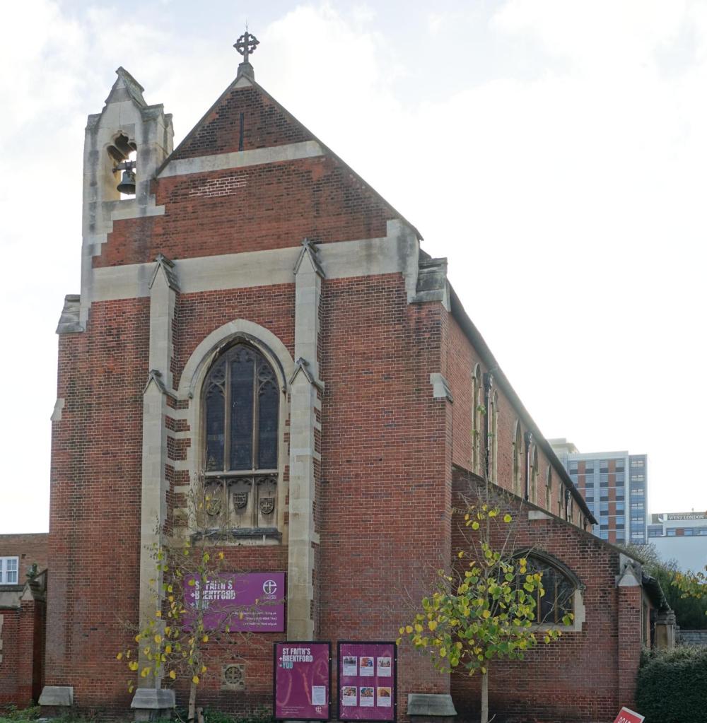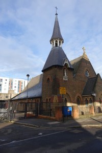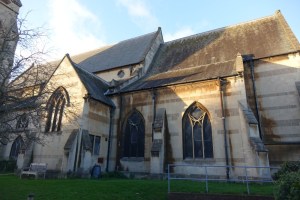 Just behind the main street and the town centre church for Brentford. The original building is of 1868-69 by F & H Francis, but in 1990 the church was rebuilt by Michael Blee Partnership. The tower, spire, south and east walls were retained but a new building was constructed between and to the north of them. The former chancel remains as a side chapel.