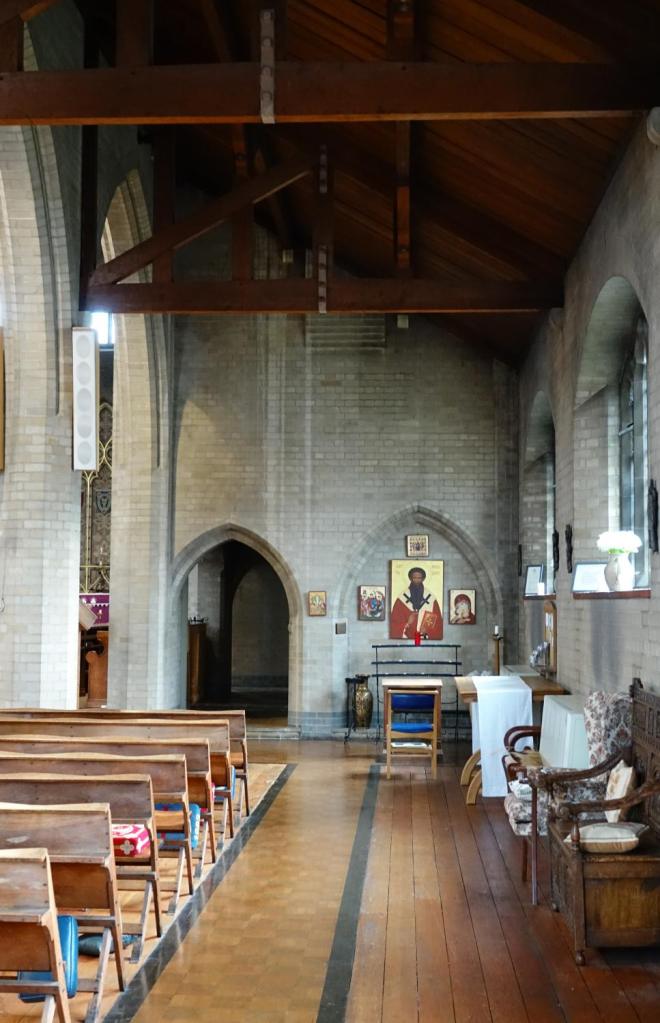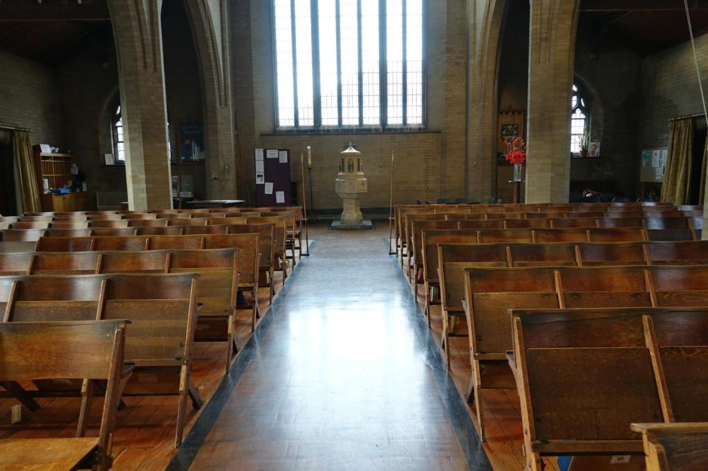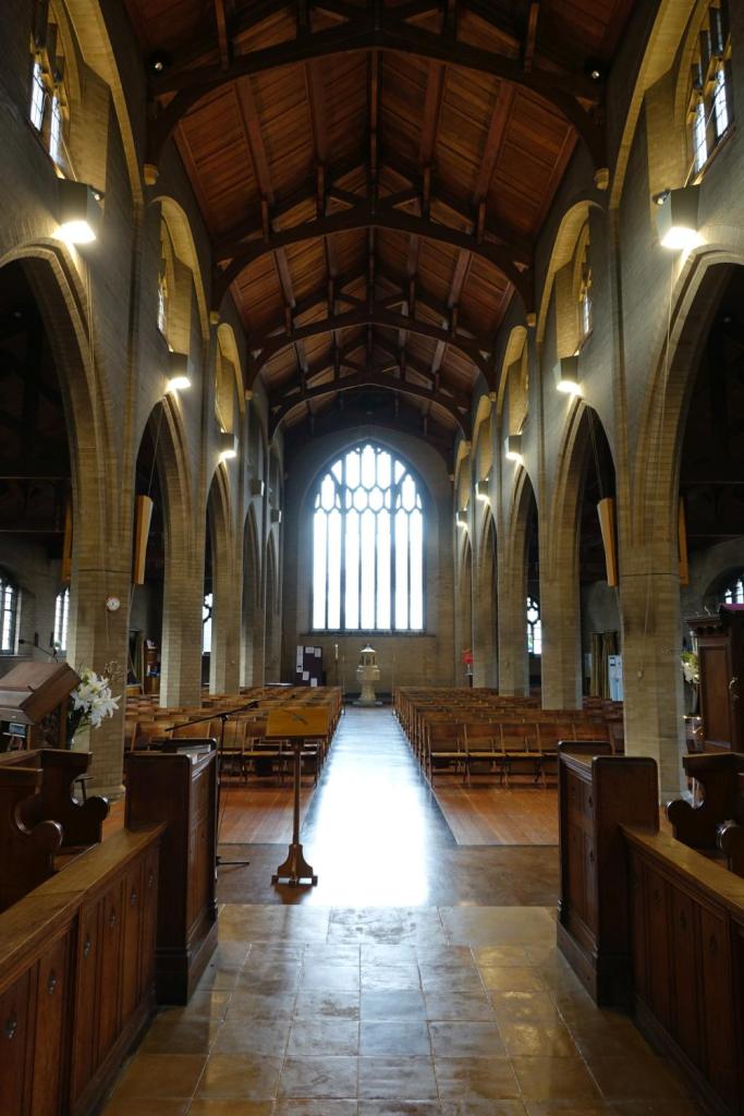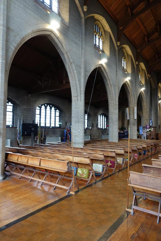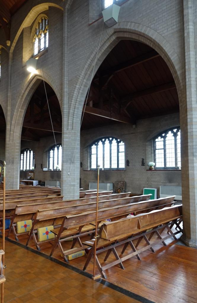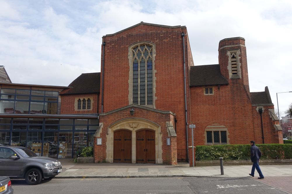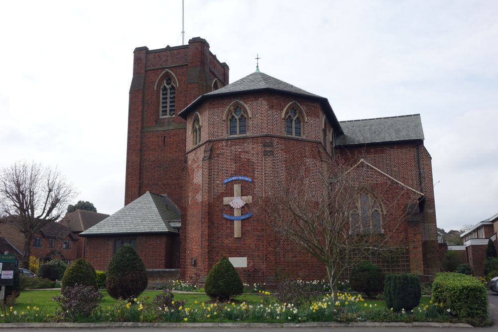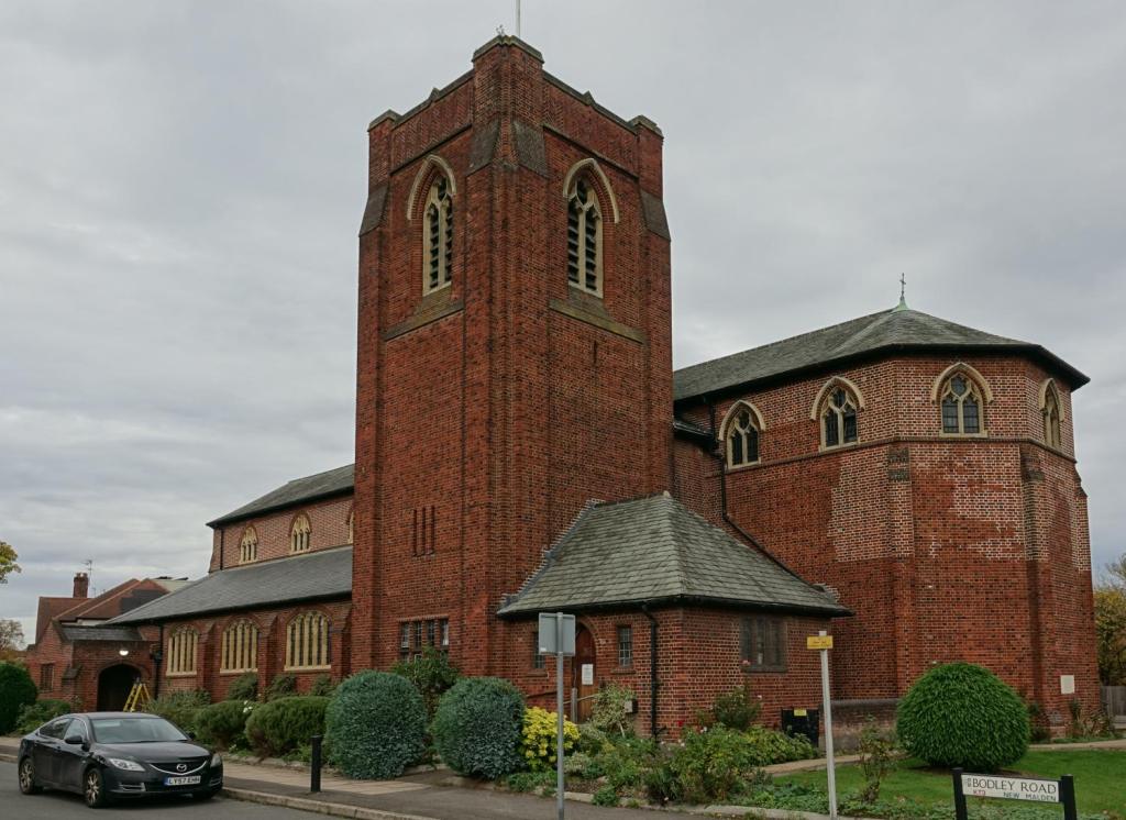 A large church by the Kingston by-pass. It was built in 1935 by Newberry and Fowler. There was some blast damage in WW2 which was rebuilt in the original style post war. The seating comes from a disused cinema. The Lady Chapel east window is by John Hayward.