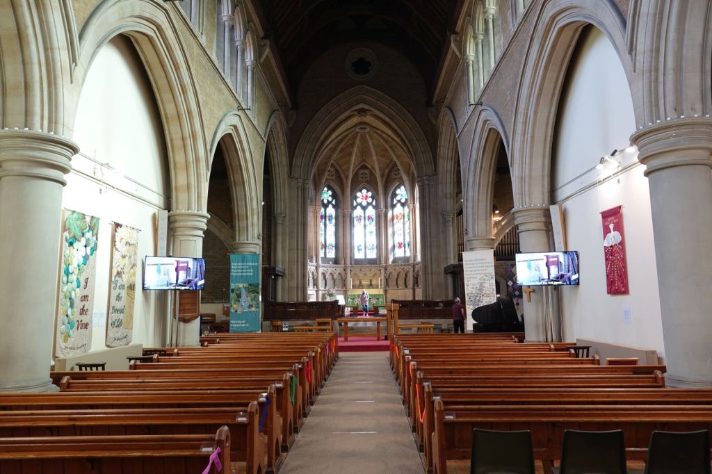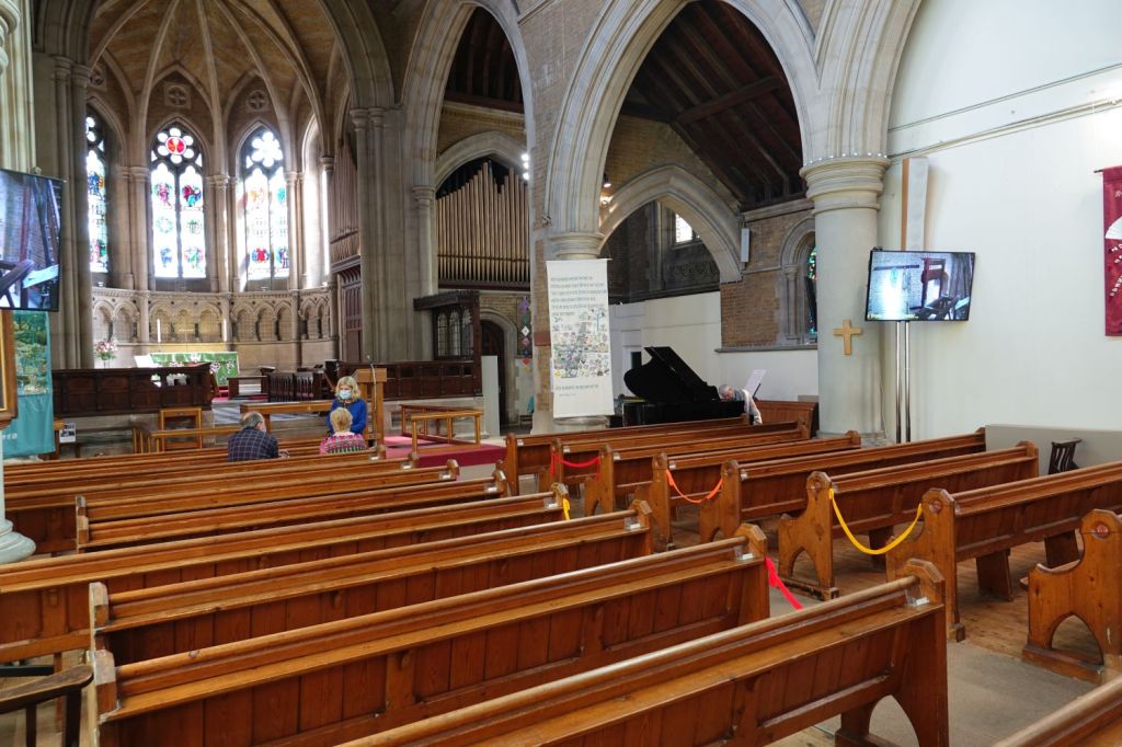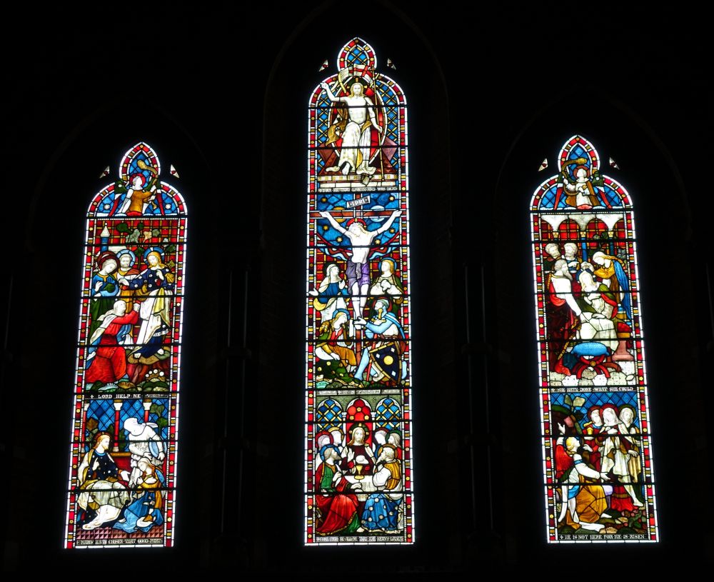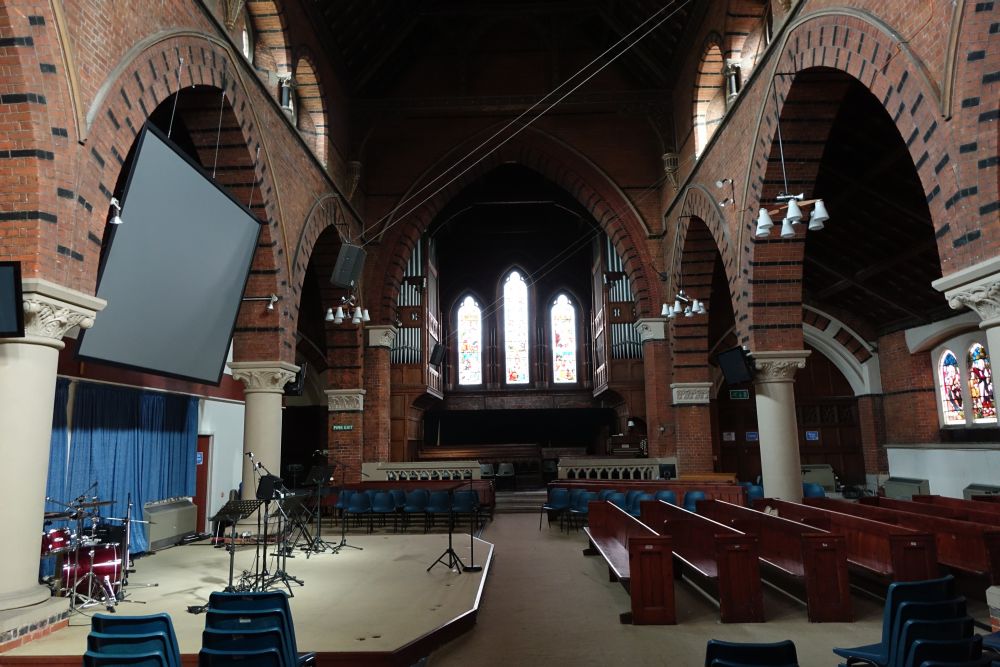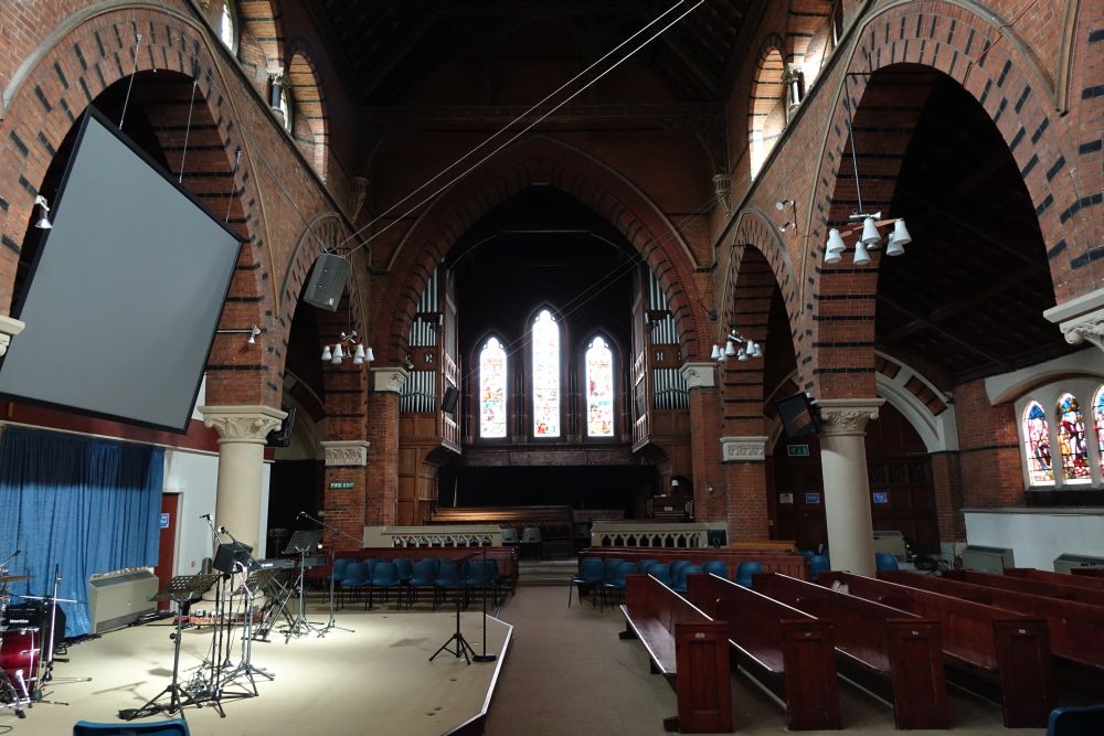 A landmark on the approach from the South to Surbiton. It is a design by C.L. Luck from 1874-75. The aisles were partitioned off in 1976. The east windows are by Hugh Easton, the former baptistry by Louis Davis and the south transept by W. Carter Shapland.