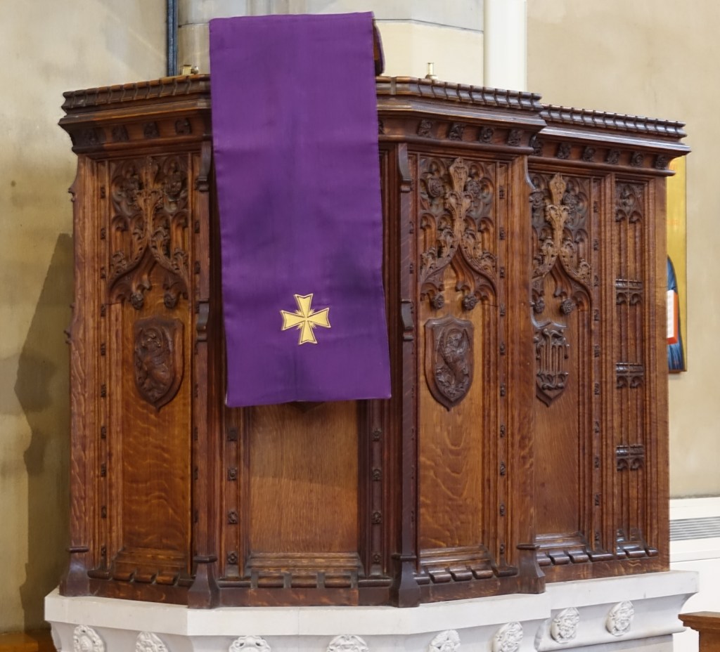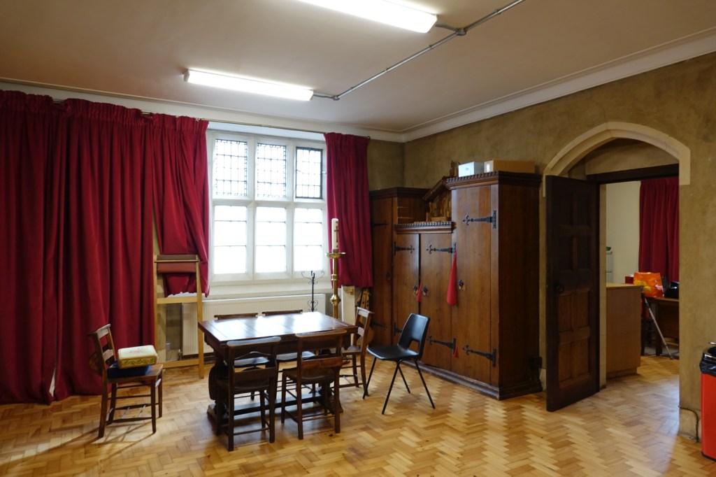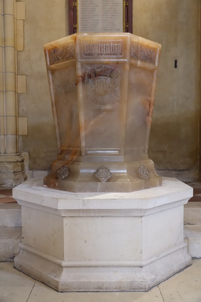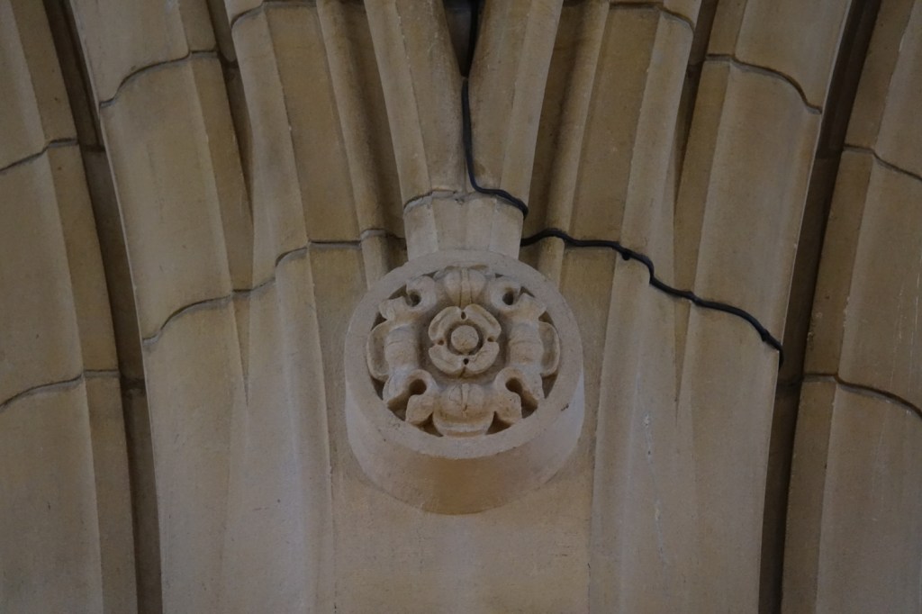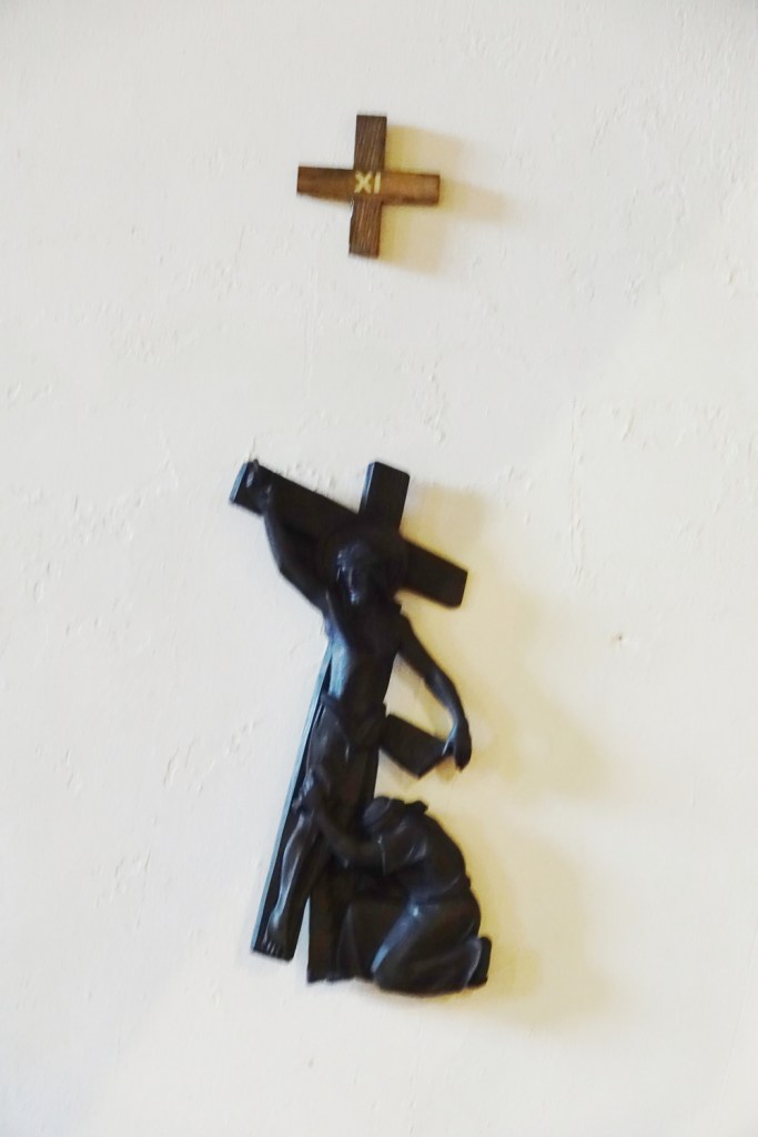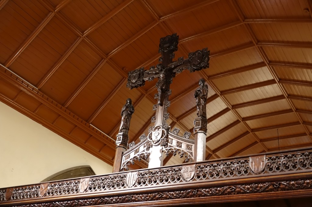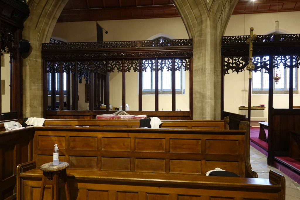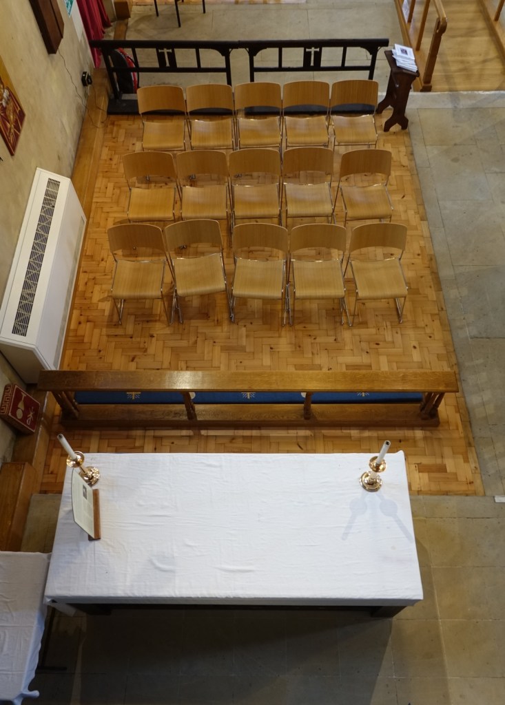 At the end of two dead end roads, a church of 1931 by A.C. Martin. It was financed by the sale of the suite of St Olave, Tooley St in Southwark. The pulpit and font were brought from that church. The west porch was added to the “temporarily finished” west end in the 1960s.