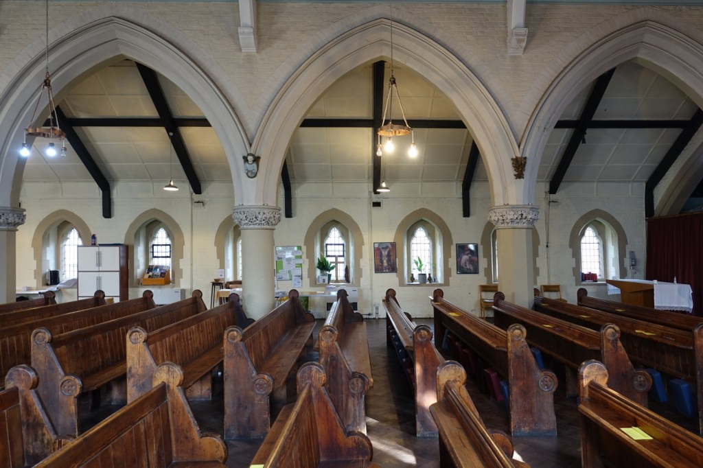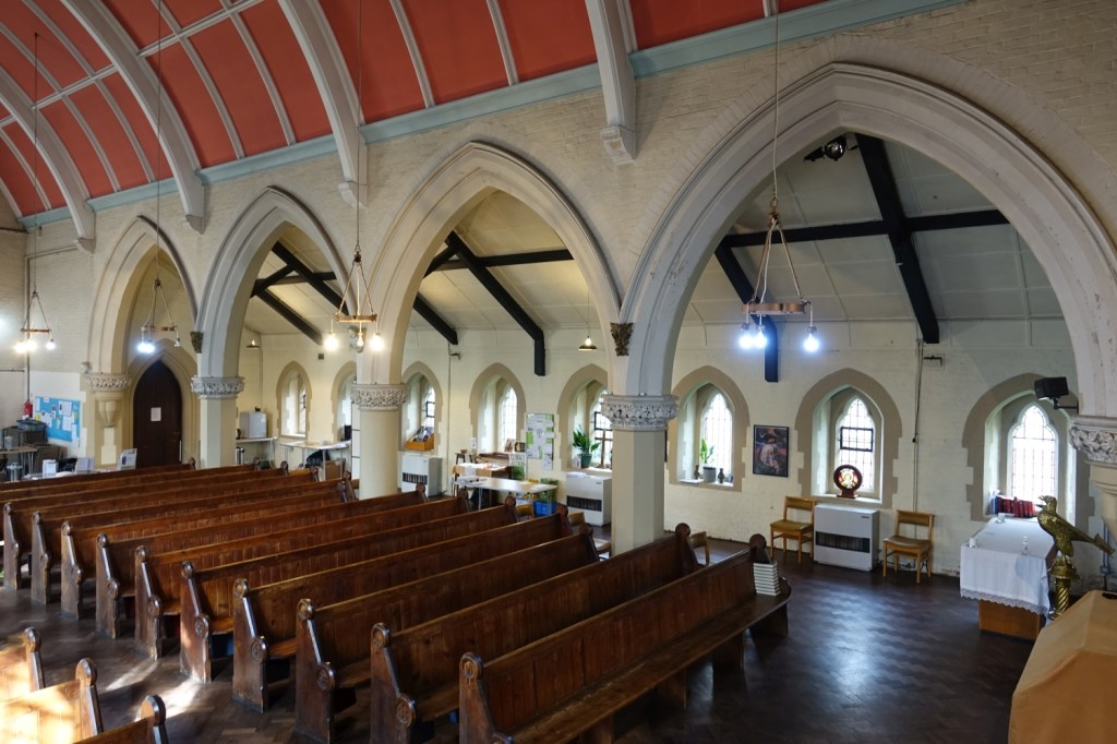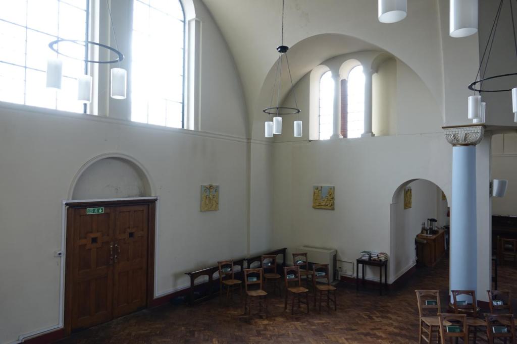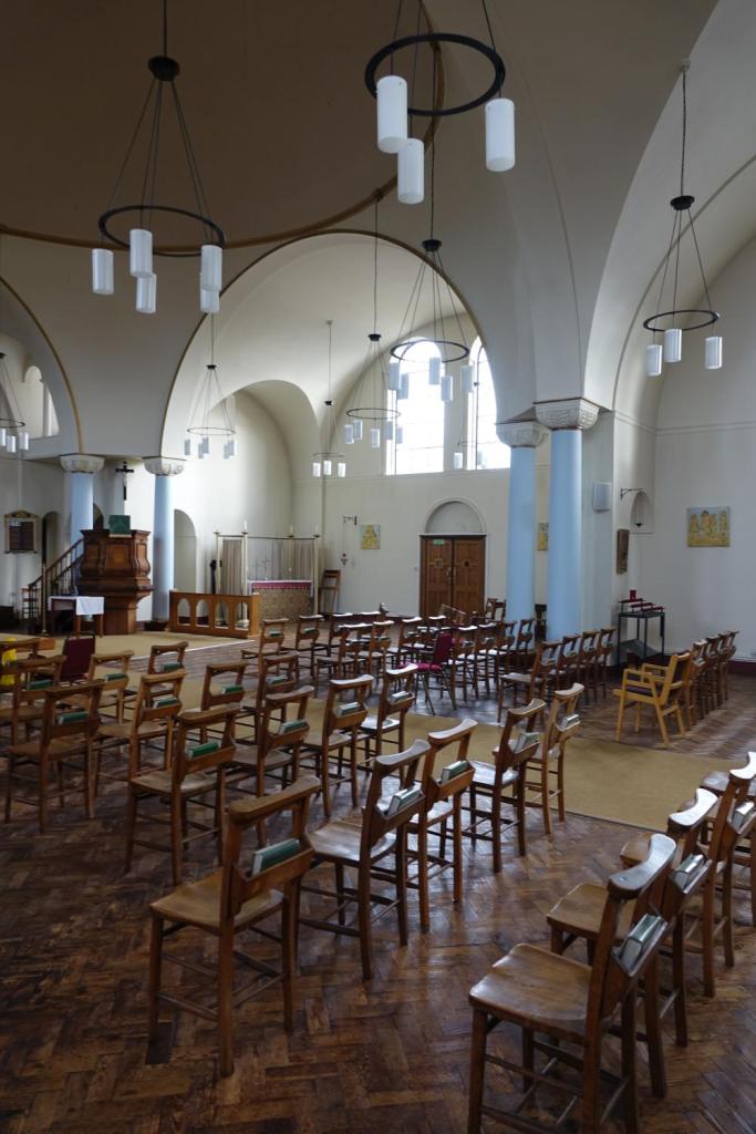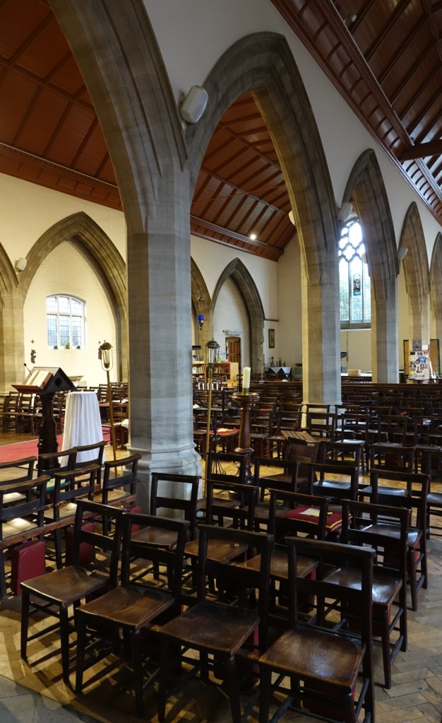 Just north of the Figges Marsh open space, this is a large church of 1914 by H.P. Burke-Downing, the adjacent hall is also by him from 1908. A north aisle was planned but has never been built.