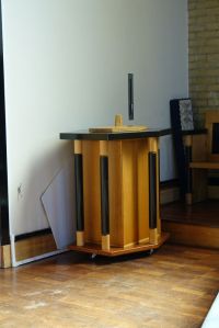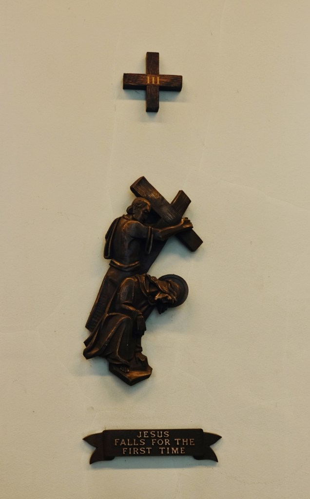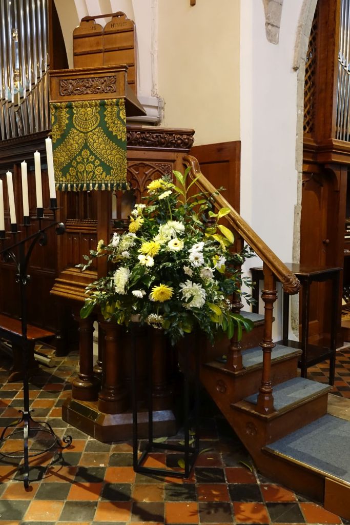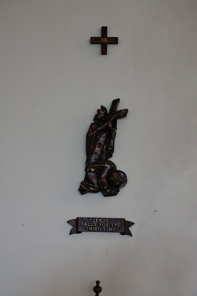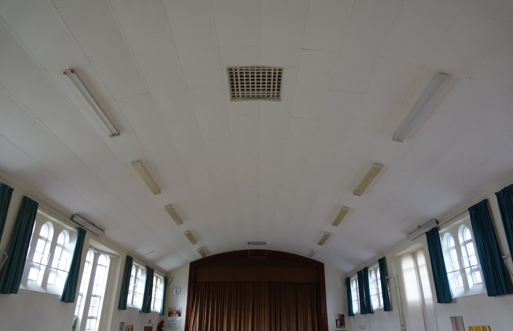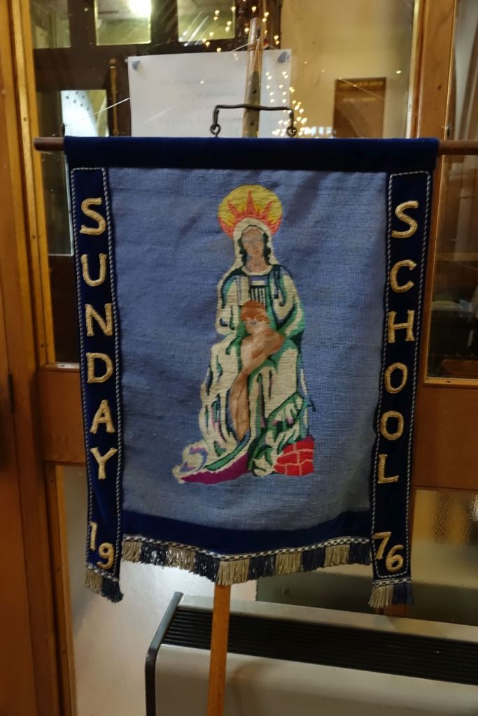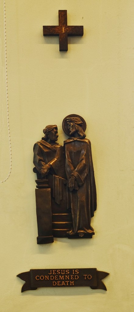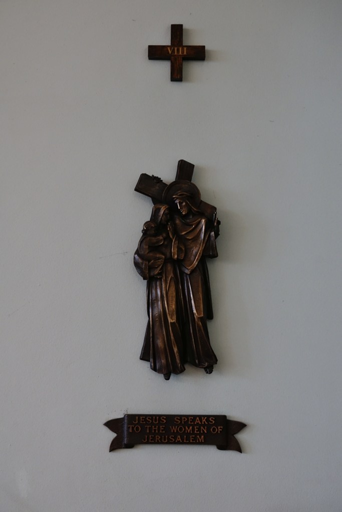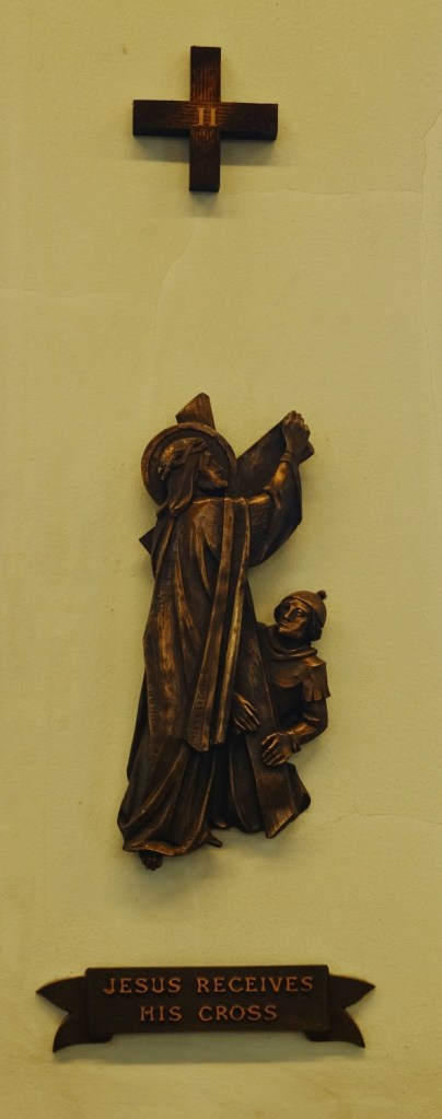 Two churches at right angles to each other. The older one was built in 1934 as a hall and church and became a hall when the newer one facing the street was built in 1956-57. Both are by T.F. Ford. The current church features murals by Hans Feibusch and glass by John Hayward. The older building is shown at the end of the images. There is a separate Lady Chapel off the lobby linking the hall and church.