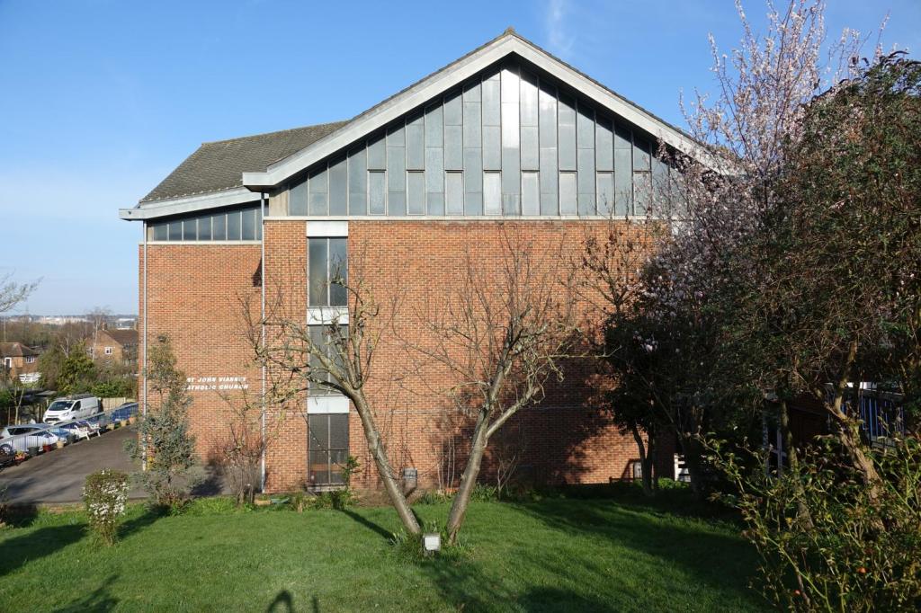 On the north side of Ilford, a massive church by Sir Herbert Baker dating from 1923-24, the hall of 1907 next door was the church until the current one was built. There are several fine Karl Parsons windows in the church. There is also a brand new window in the chancel clerestory by David Griffiths. A side chapel is a memorial to the Griggs family who paid for much of the church.