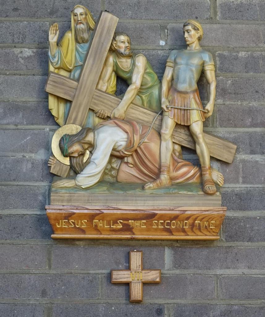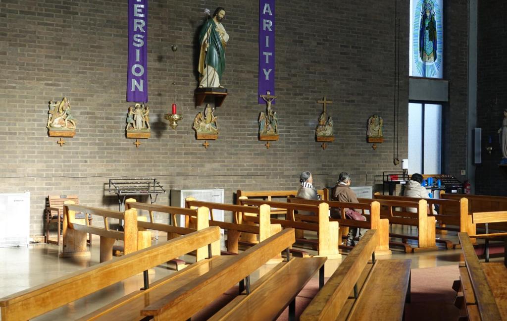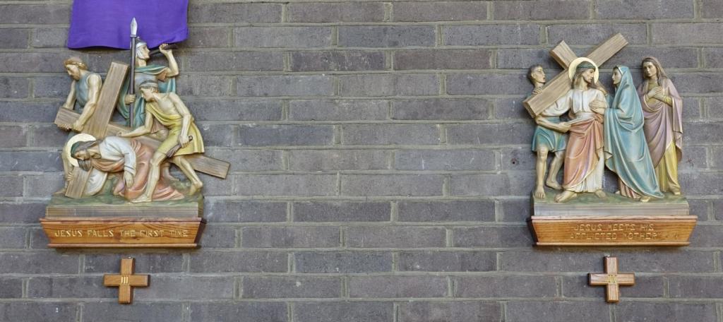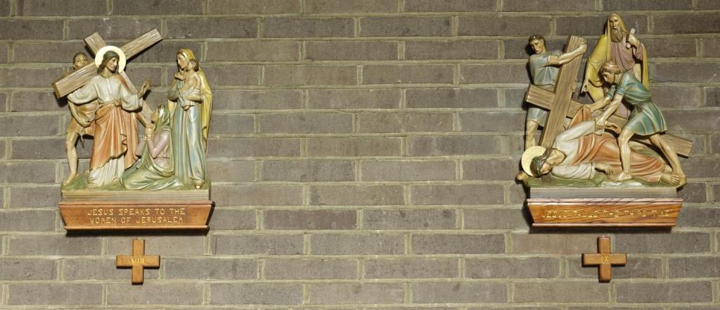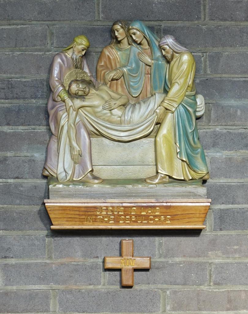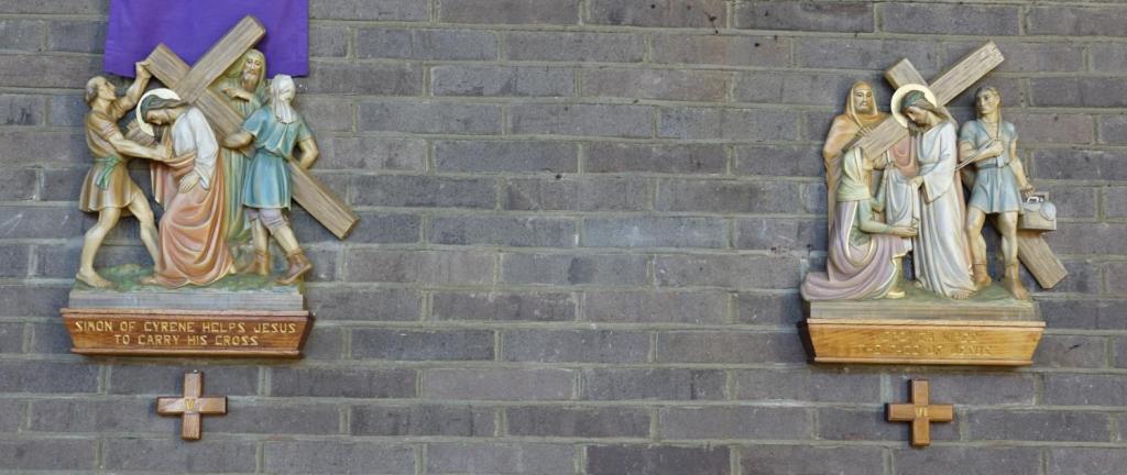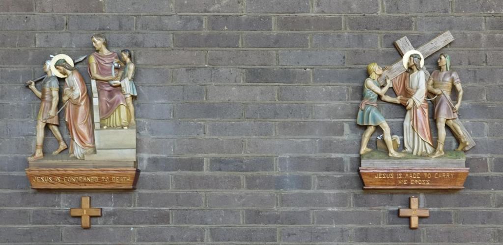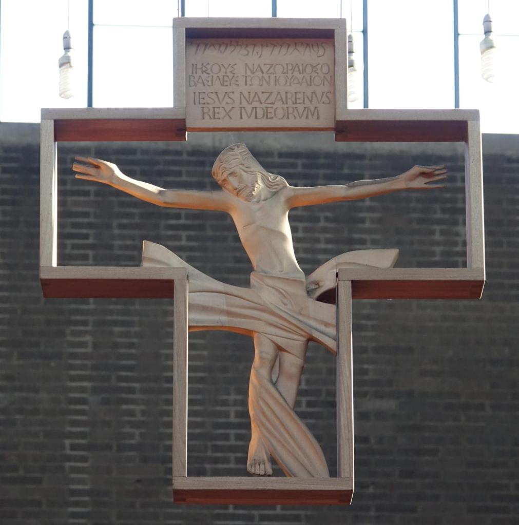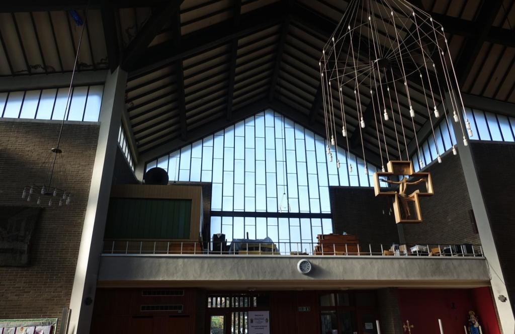 Dating from 1966 by Donald Plaskett Marshall. Following consecration reordering by Austin Winkley in 1983 brought the main altar forward in front of a large wooden screen, the old chancel became a chapel facing an altar on the rear of that screen.
