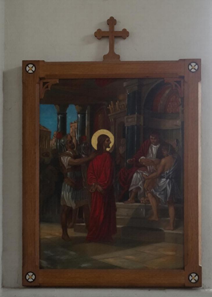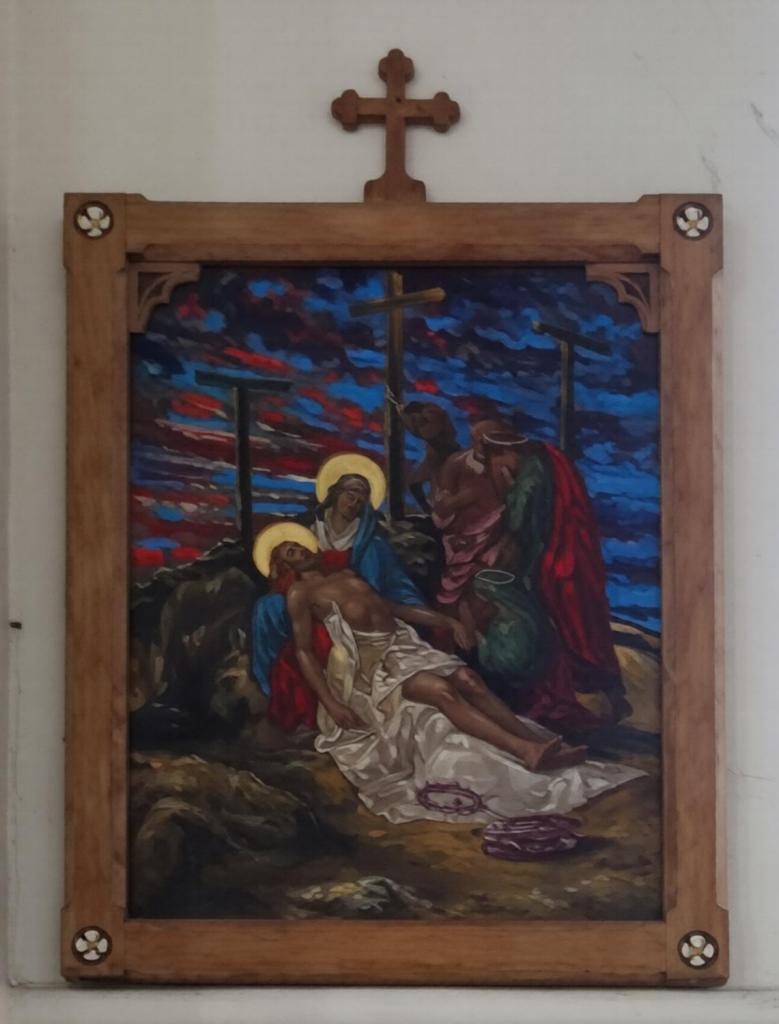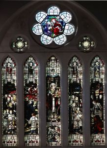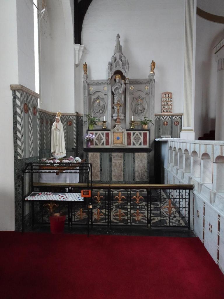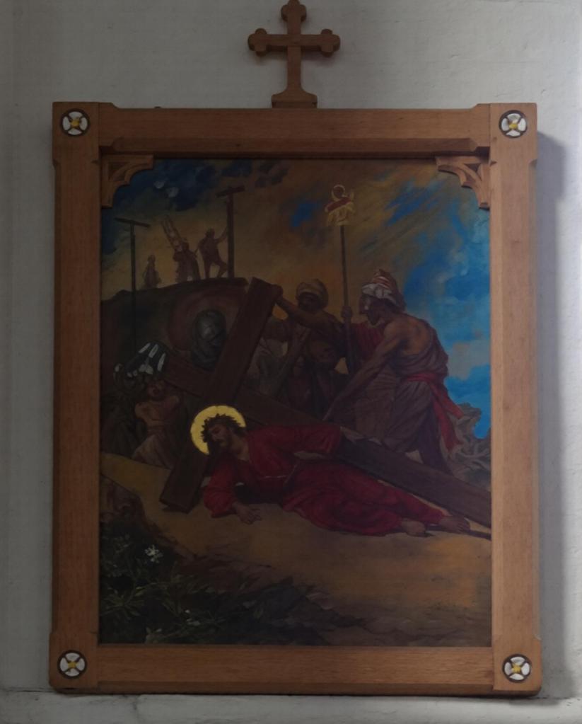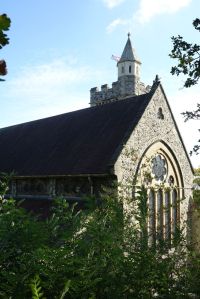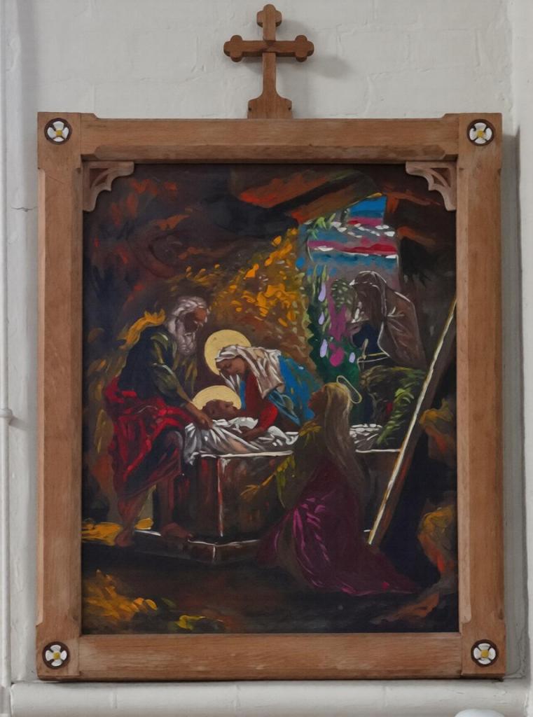 At the eastern end of Rotherhithe near the City Farm. It is a replacement for a war-damaged early 19th-century building. It dates from 1960 and is by Thomas F. Ford. The east end features a mural of the risen Christ by Hans Feibusch. My visit in mid-November coincided with remedial work on some of the concrete pillars so part of the church was screened off, the organ encased and the Lady Chapel used as a furniture store, Views from May2019 show the building in its true state.