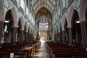 A little way south of Oxford Street it was originally built as a Congregational Chapel in 1889-91 and designed by Alfred Waterhouse. It became an eastern rite Catholic church in 1967.