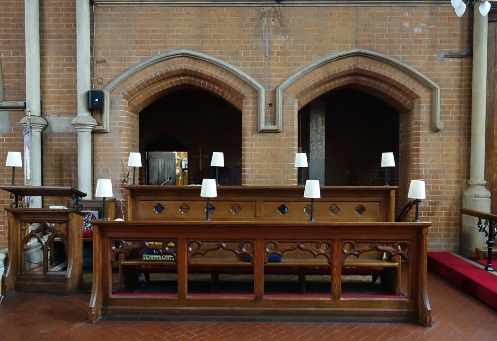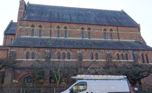 In the back streets north of the town centre, a large church of 1896 by Newman and Newman. The chancel, narthex and porches date from 1902.