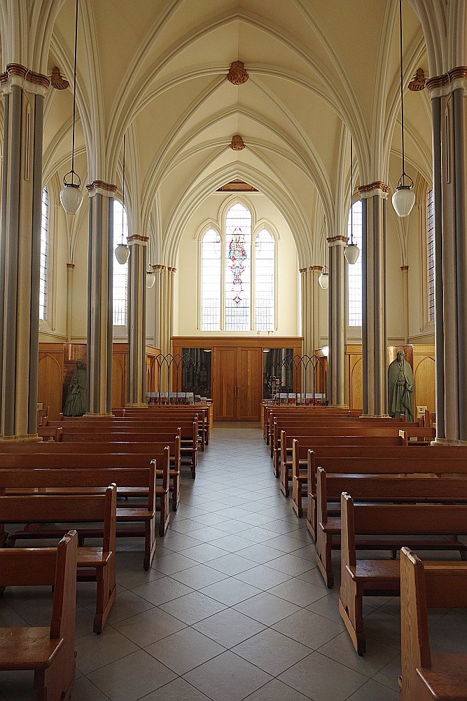 An early Catholic church 0f 1833-36 designed by J.J. Scoles. Thr teansepts were originally living qurters but were converted into chapels in 1937 by Nicholas & Dixon Spain.