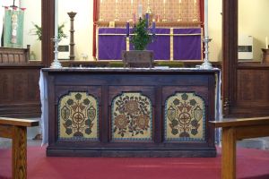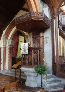In a residential area south of Norbury station. The chancel and eastern part of the nave date from 1900 (architect unknown), the western parts were added in 1929-1935 by Caroe and Passmore. A new entrance was cut into a bay of the south aisle in 1995, displacing two windows to the wooden porch area in the church.