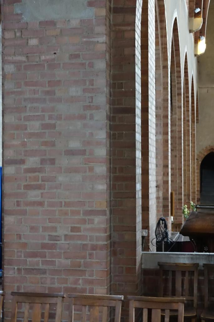 The present church dates from 2004 and was designed by Jos Townend. It is set behind the original church of 1933 by T.H.B. Scott which is now the parish hall. Most of the glazing is green tinted which accounts for the curious mint effect in the pictures.