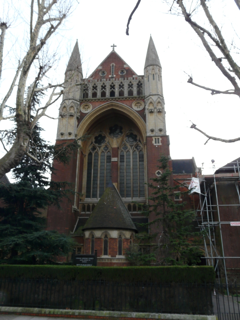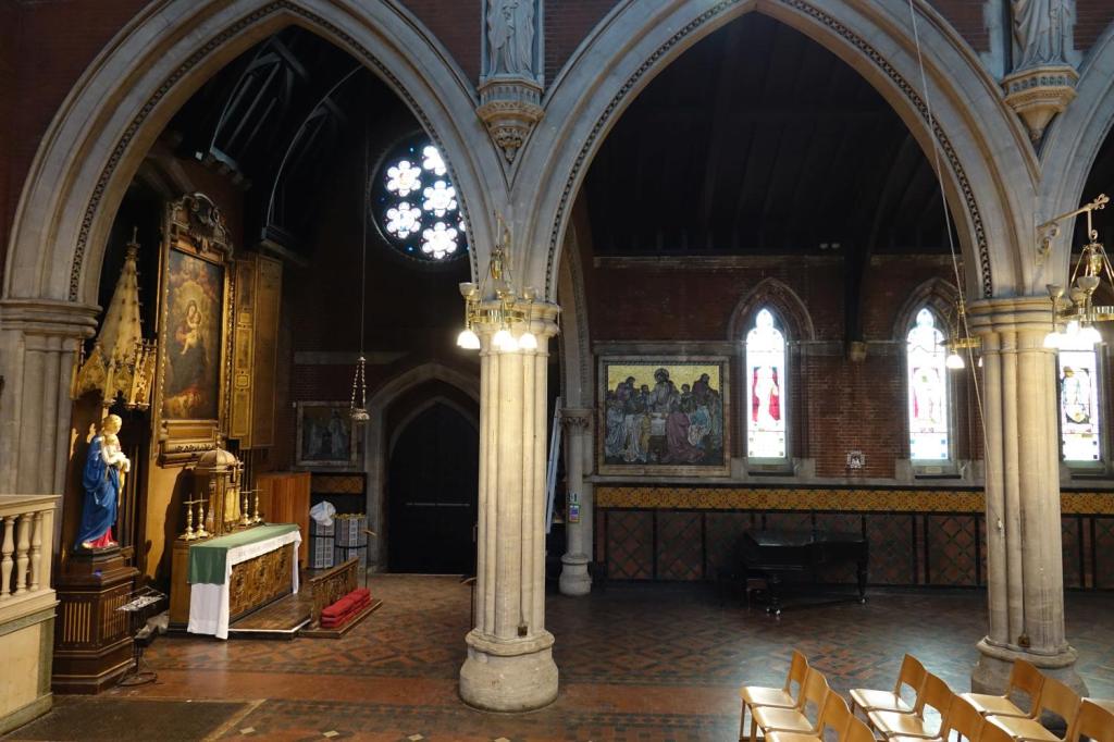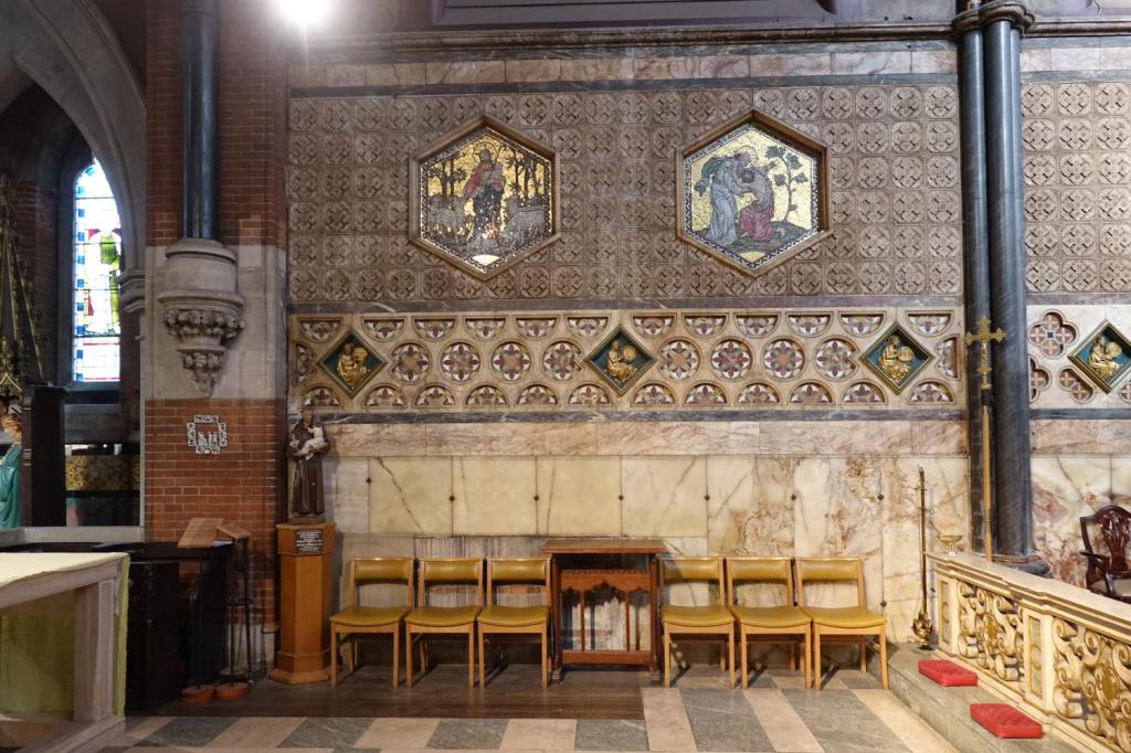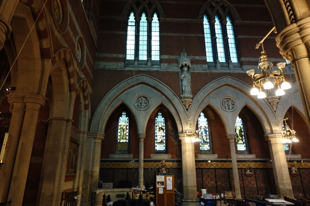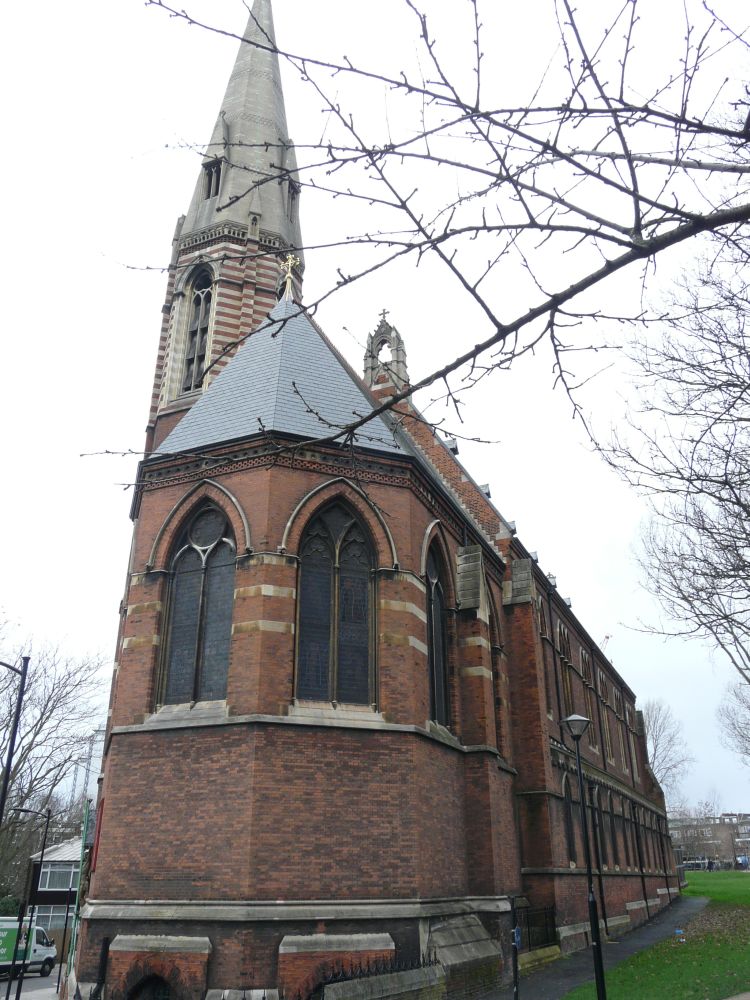 Alongside the Grand Union Canal this is one of George Edmund Street’s masterpieces dating from 1868-1878. It is fitted onto an awkwardly shaped site, defined by now demolished streets. Most of the glass was designed by Henry Holliday and made by Heaton, Butler and Bayne. The south aisle of the crypt (the bottom 10 pictures) was made into the chapel of St Sepulchre by Ninian Comper in 1895, it was renovated by Sebastian Comper in 1967. When I visited in 2012 this was in need of restoration, which was carried out in 2019. At that time the west end gained an extension called Grand Junction containing a cafe and community facilities. The top set of images is from 2025 and the lower set is from 2012.