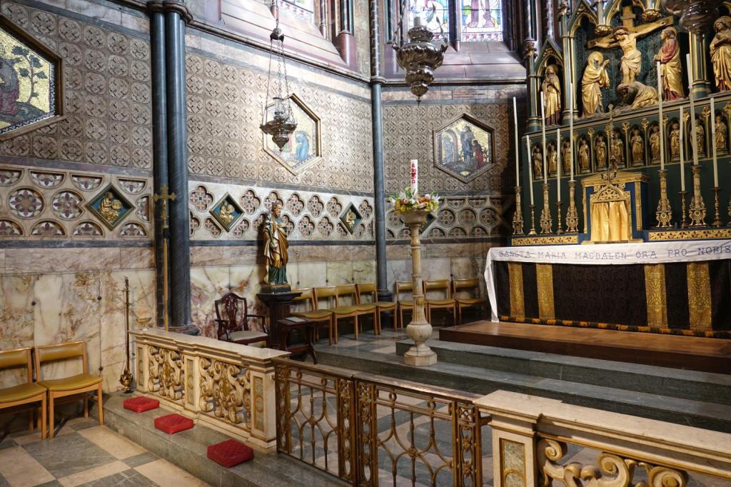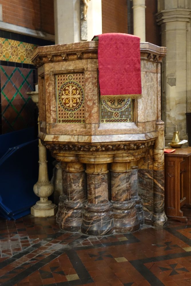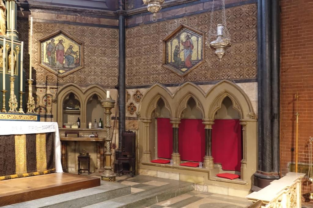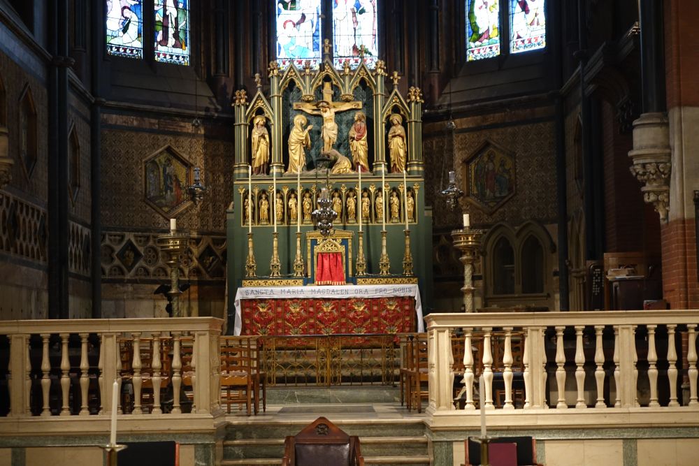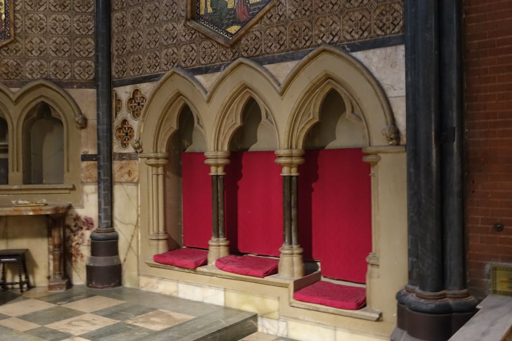 Alongside the Grand Union Canal this is one of George Edmund Street’s masterpieces dating from 1868-1878. It is fitted onto an awkwardly shaped site, defined by now demolished streets. Most of the glass was designed by Henry Holliday and made by Heaton, Butler and Bayne. The south aisle of the crypt (the bottom 10 pictures) was made into the chapel of St Sepulchre by Ninian Comper in 1895, it was renovated by Sebastian Comper in 1967. When I visited in 2012 this was in need of restoration, which was carried out in 2019. At that time the west end gained an extension called Grand Junction containing a cafe and community facilities. The top set of images is from 2025 and the lower set is from 2012.