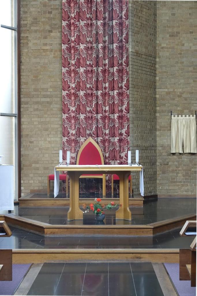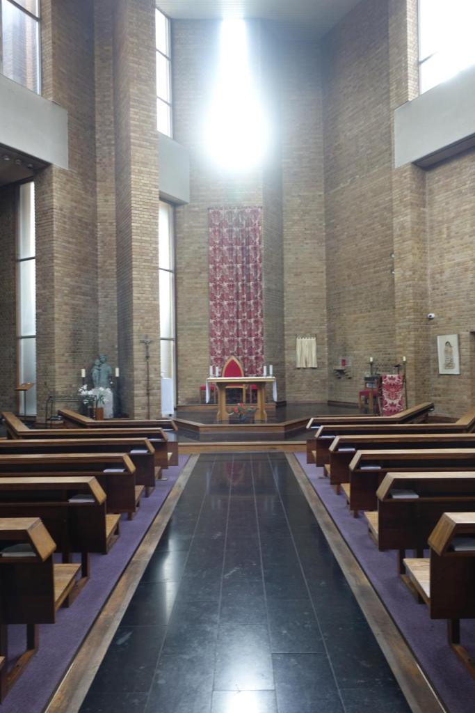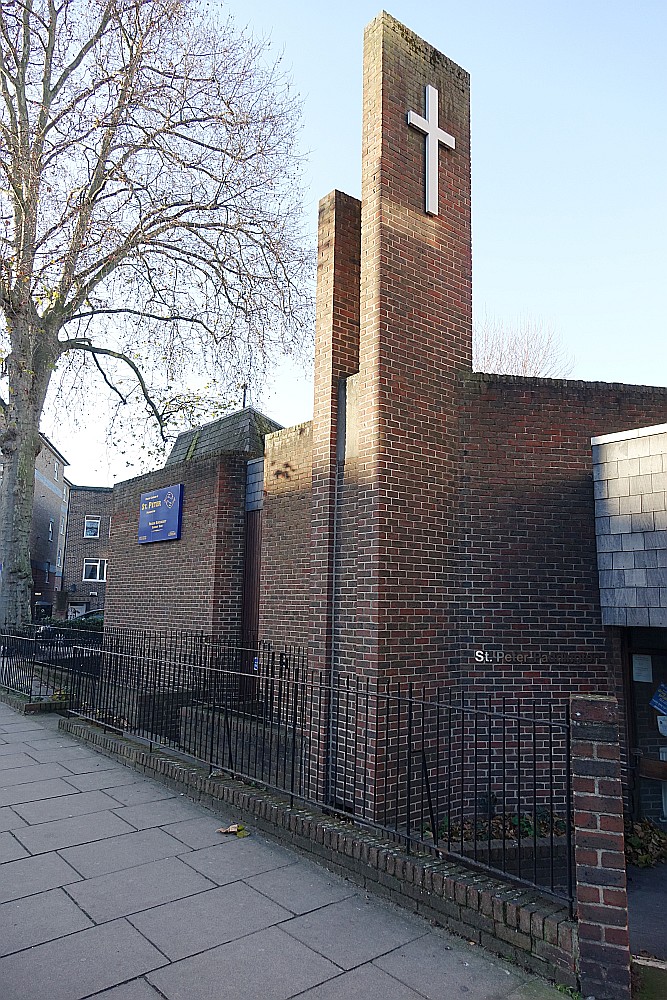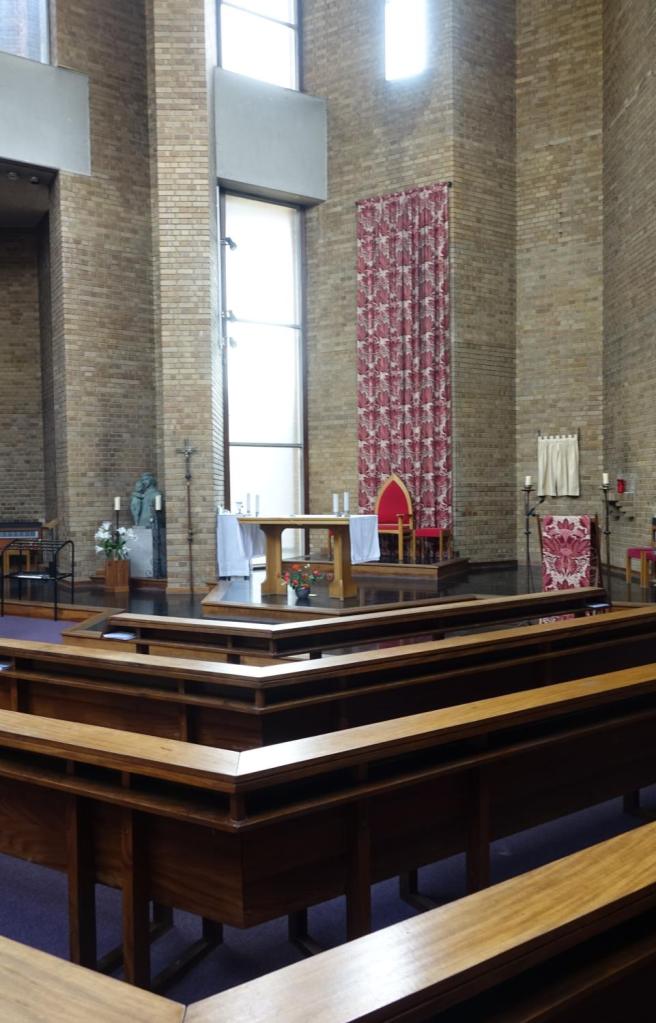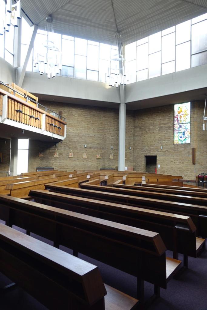 Built 1973-76 by Biscoe & Stanton as a mixed housing/church development to replace a mid 19th century church. The sole stained glass window is by John Hayward.