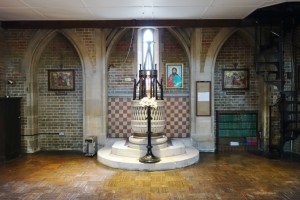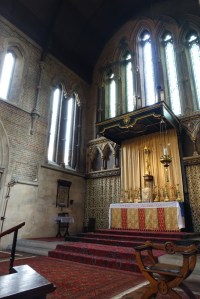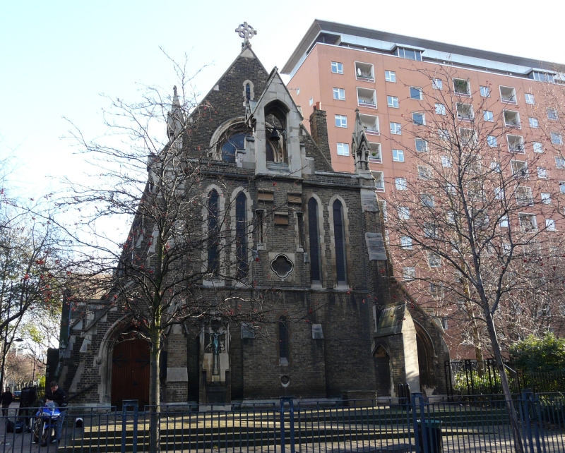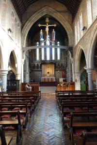 This is one of John Loughborough Pearson’s major large brick-built churches and dates from 1878-87. There are inner and outer aisles, together with an apsed Lady Chapel. The south transept was meant to be the base of a large tower that has never been completed. Although there has been considerable structural work done in 2016-2017, serous subsidence means that the south side of the nave has to be propped by large wooden buttresses. It was damaged in WW2 and restored by Caroe and Partners in 1946-51. Much of the glass by Clayton and Bell was lost at that time. Some has been replaced by 1950s windows by Francis Spear. Some older glass by Kempe and Comper survives.