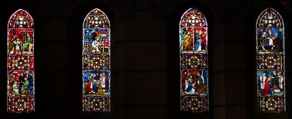 Its origins are in a mission to the poor and the actual church lies behind the sisters’ and clergy houses. The church was designed by F.H. Pownall in 1865-66, with the west end, chapel and baptistry added 1884-1894 by Maurice B. Adams, this work was not completed until 1939. The whole building needed considerable reconstruction in 1948-50 after war damage. Off the south aisle there is a small Walsingham chapel with extensive wall painting.