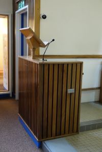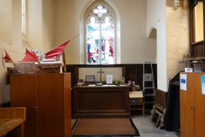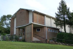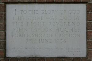 On a hillside on the west side of the Brighton Road. There are two buildings here. On the higher ground is what is now the church hall built in 1929 and designed by S. Jupp. Below it is a church of 1954 designed By D.E. Nye and Partners. This is on the site of a church by N.F. Cachemaille-Day which was left incomplete at the outbreak of WW2 and largely demolished to enable this building to be constructed. A window and plaque commemorate two churches in Greenwich destroyed in the war and whose compensation sums paid for this building. The hall is shown in the last 2 images.